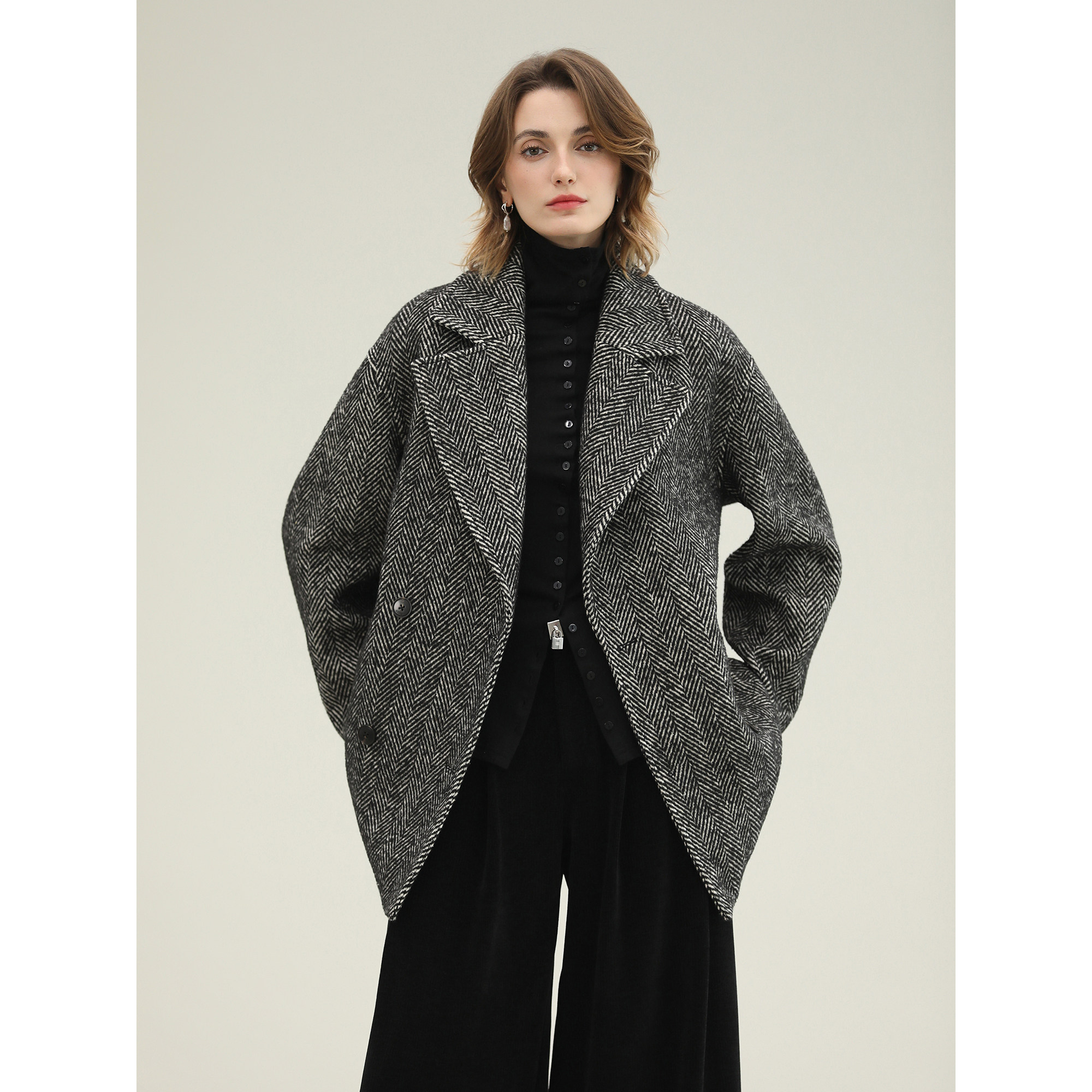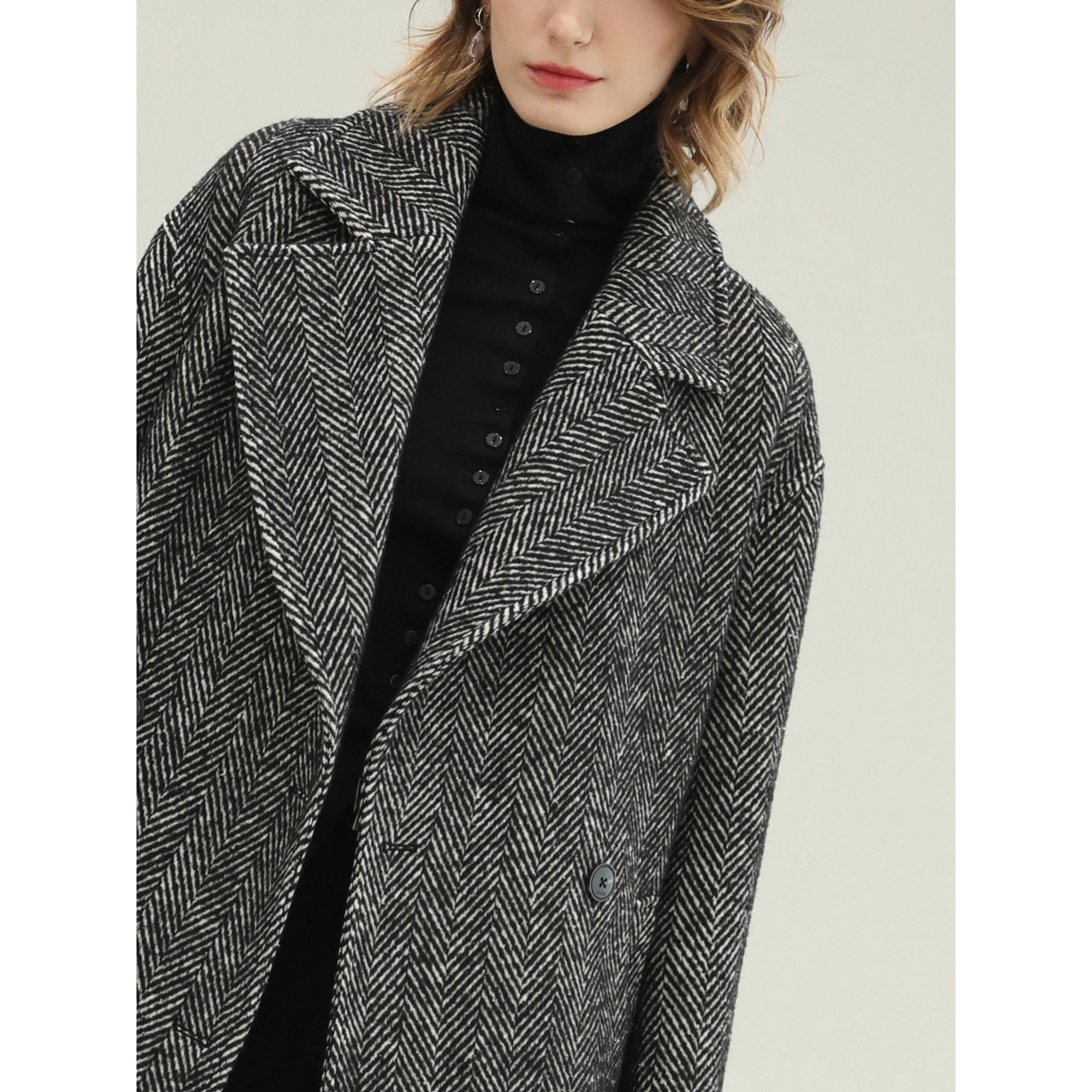 COCOBELLA复古气质人字纹翻领大衣女英伦风冬毛呢外套WL3217
