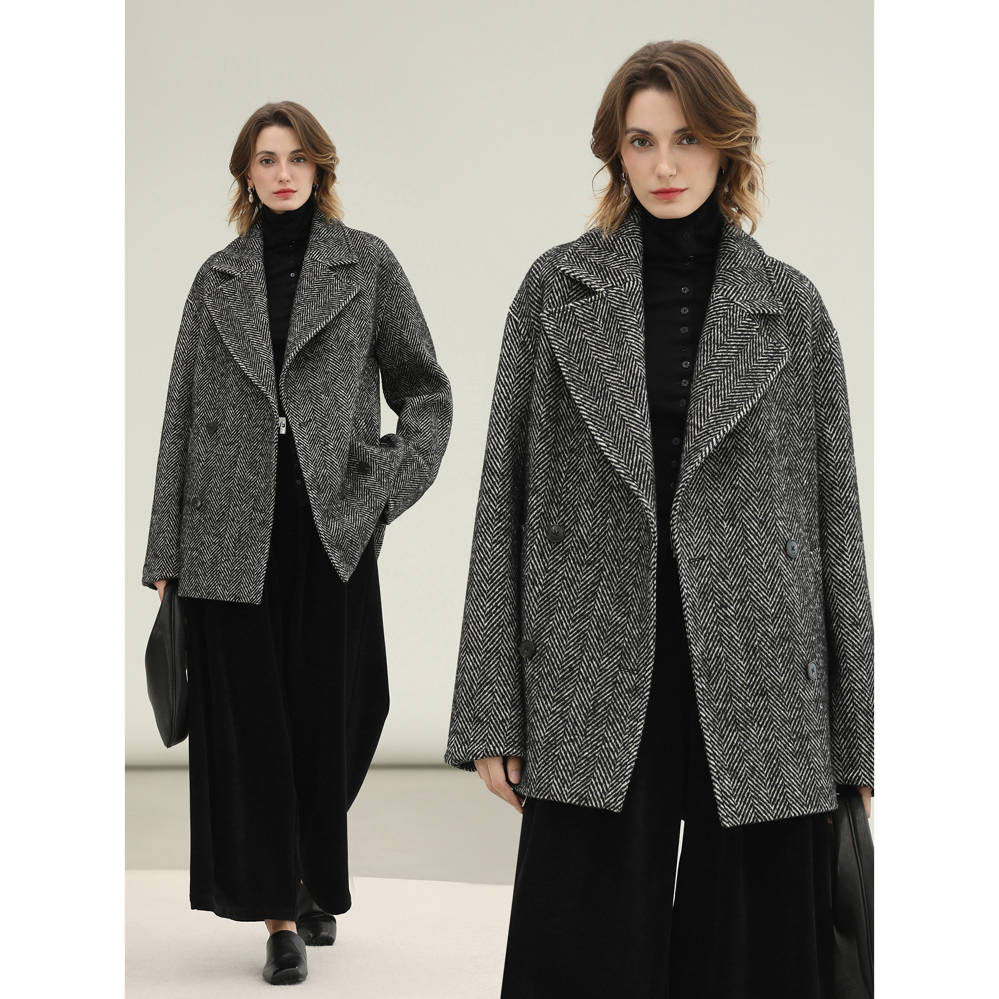 苏丽羊驼高定101801爆款大衣双排扣女短款秋冬毛呢外套