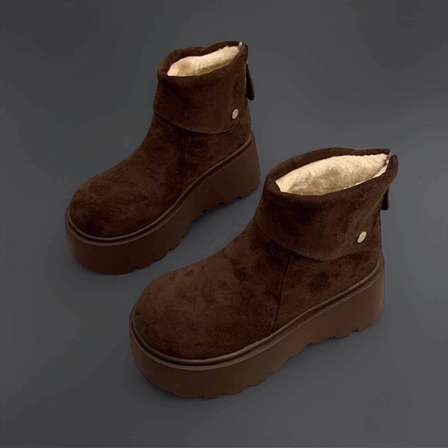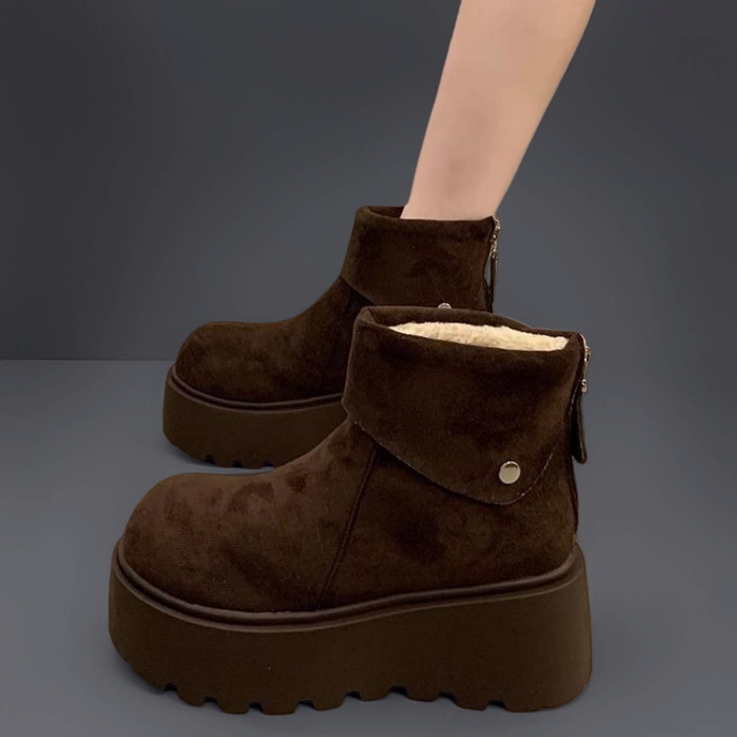 miu家厚底雪地靴女冬季真皮短靴羊毛侧拉链增高厚底加绒毛毛棉鞋