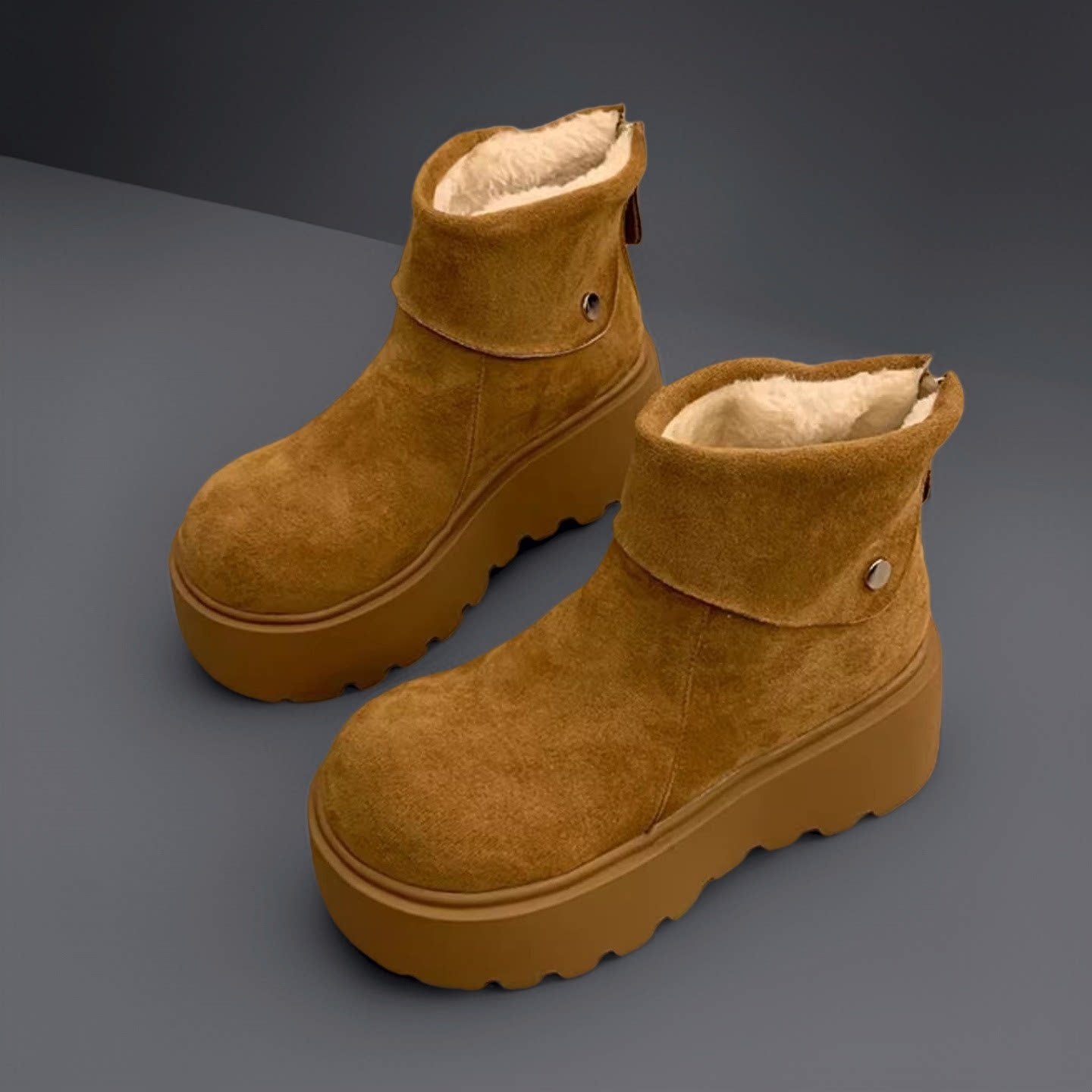 内增高~桑坡真皮厚底羊毛雪地靴女加绒保暖东北棉靴秋冬季短筒靴