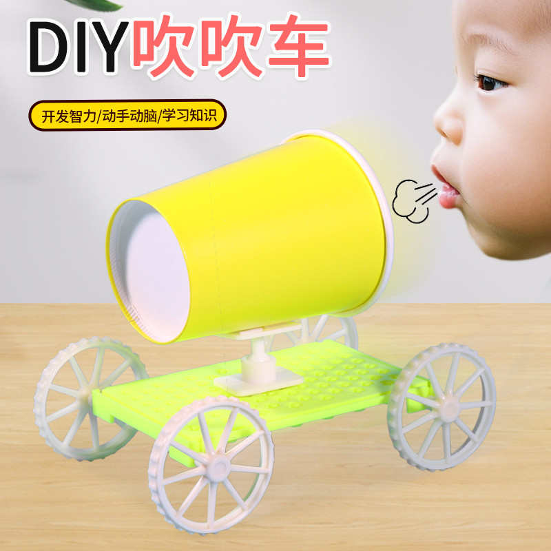 幼儿园手工拼装材料包DIY吹吹车物理空气动力车科技小制作小发明