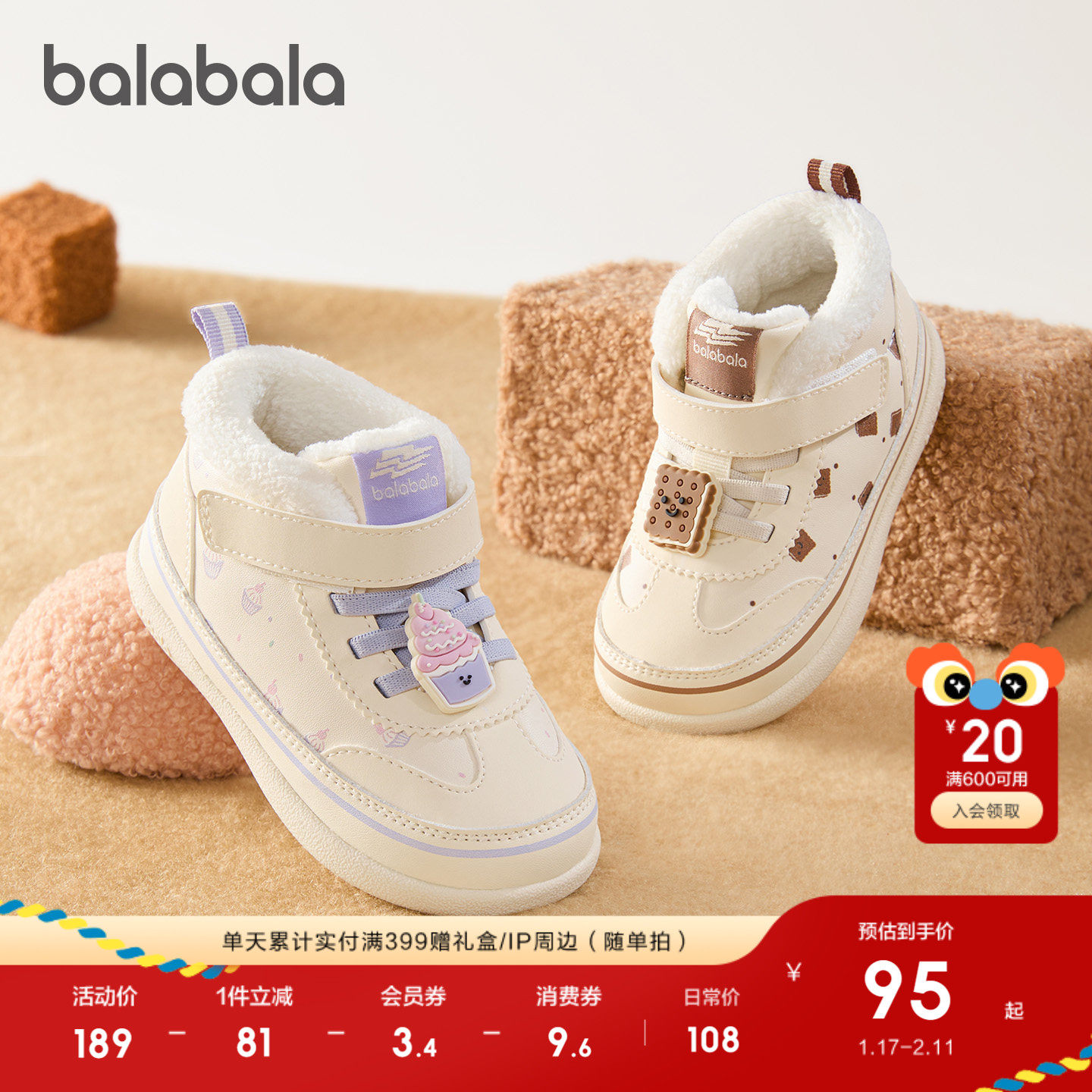 萌趣防滑学步鞋,加绒保暖板鞋