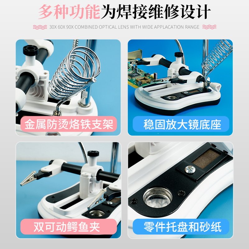 拜斯特台式维修放大镜10倍led光学镜片2.5倍电路板手机维修放大镜