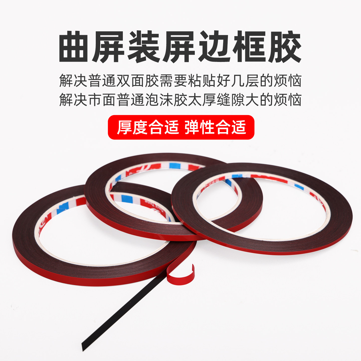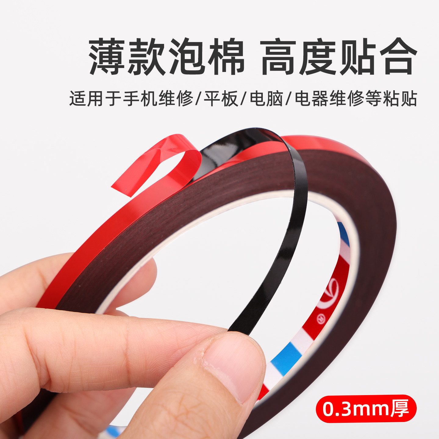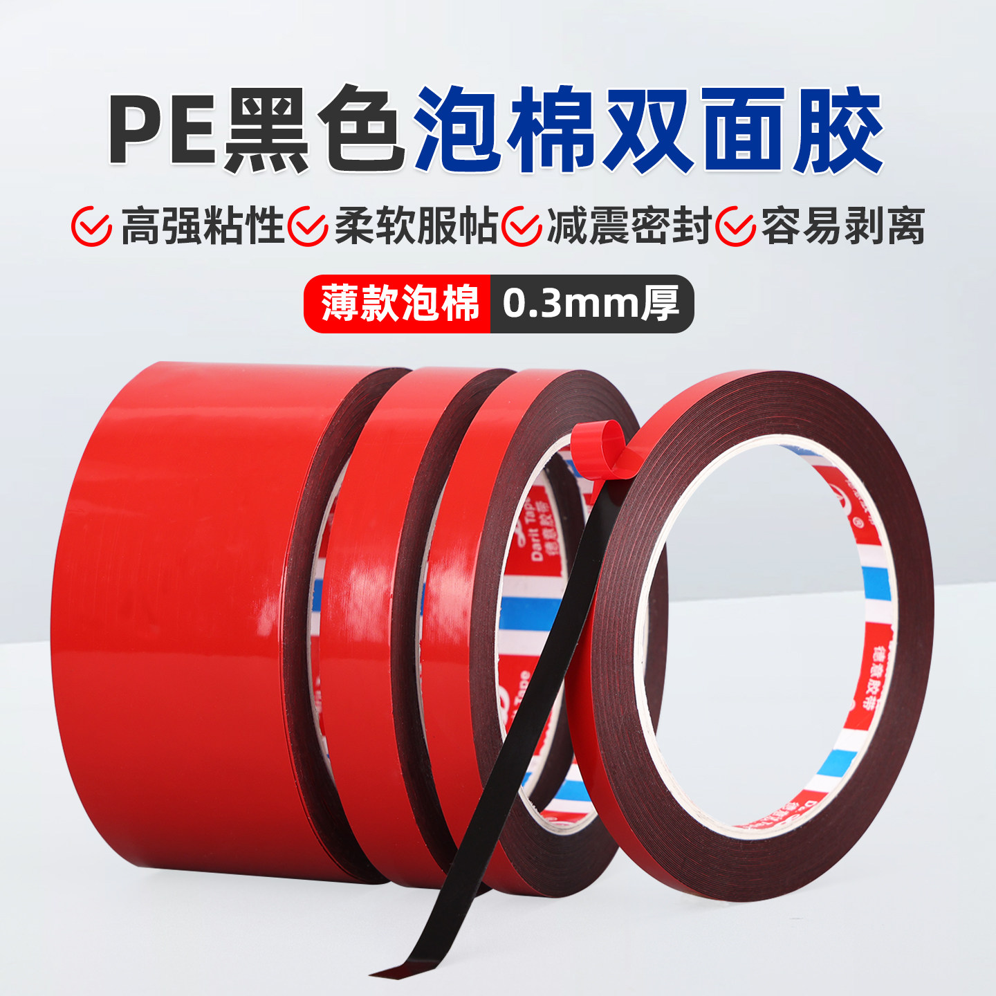 薄款0.3mm厚高粘PE黑色防水泡棉双面胶手机平板电脑维修隔音降噪汽车装饰条曲面屏固定双面胶10米长
