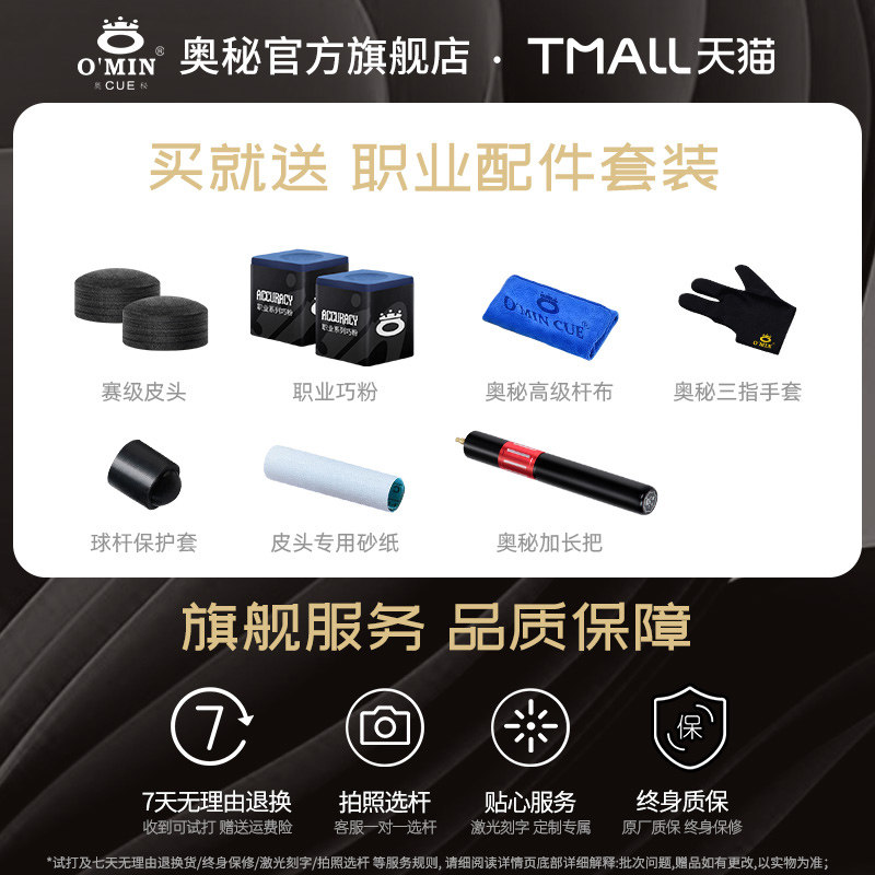 奥秘官方旗舰店三国水镜台球杆小头斯诺克中式黑八球杆桌球杆中头