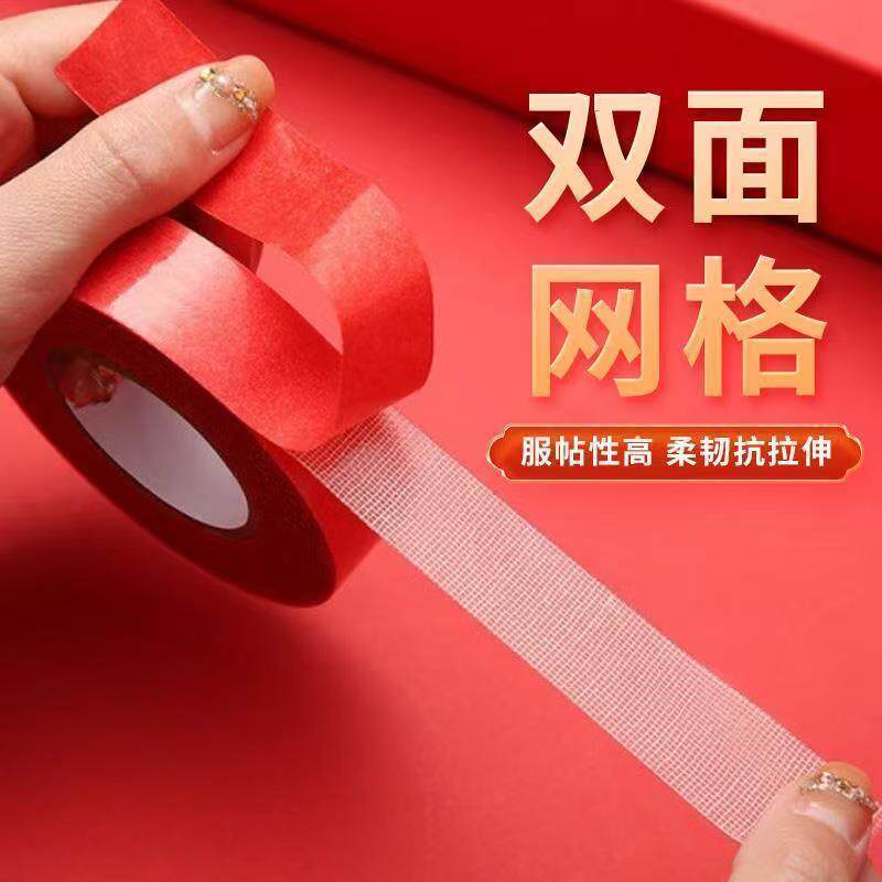 智购贴春联无痕双面胶对联专用强力婚车婚房喜贴福贴易撕胶带耐高温网格墙面不留胶神器年货节固定大卷墙纸