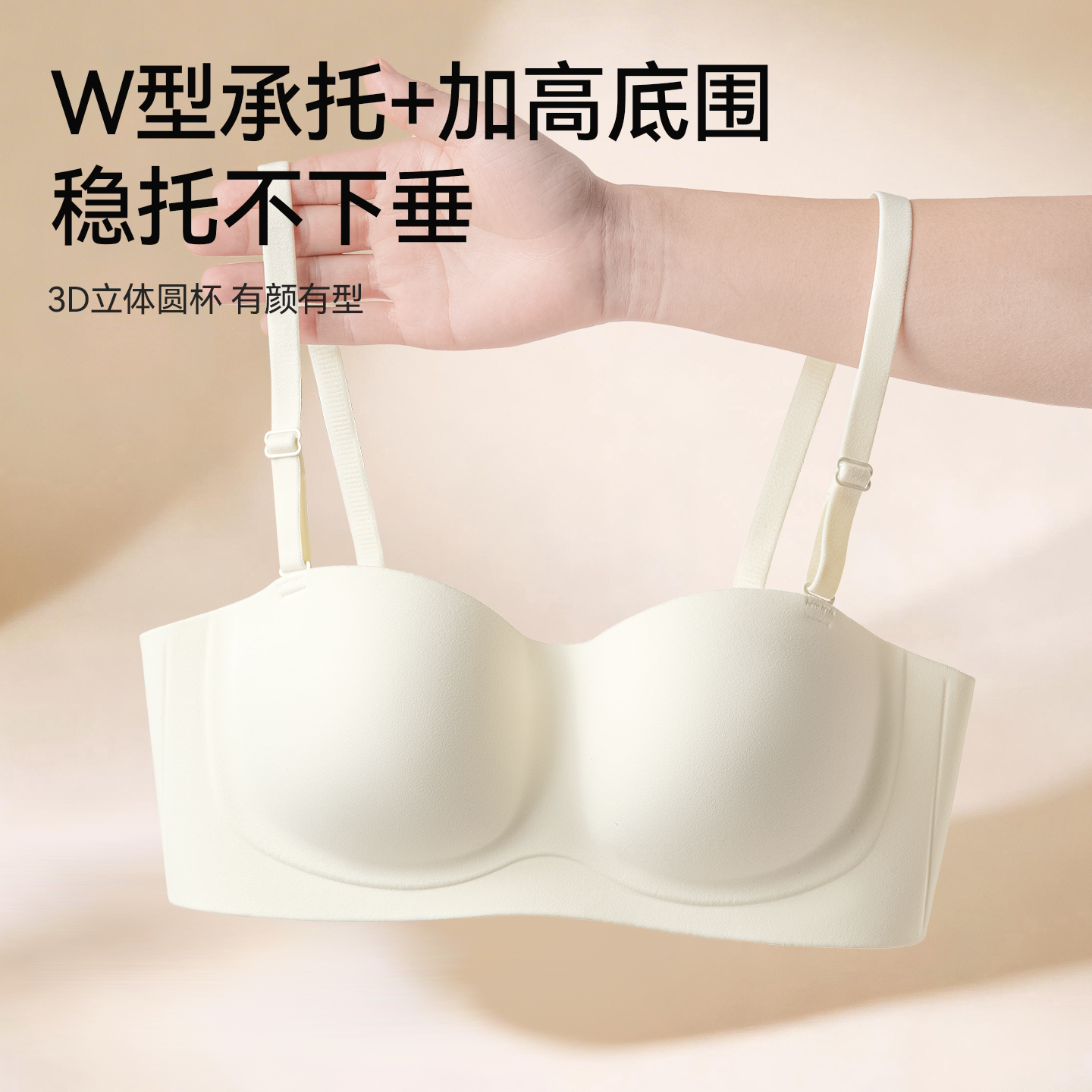 菇娘家稳稳杯无肩带内衣女大胸美背抹胸裹胸隐形无痕聚拢防滑文胸
