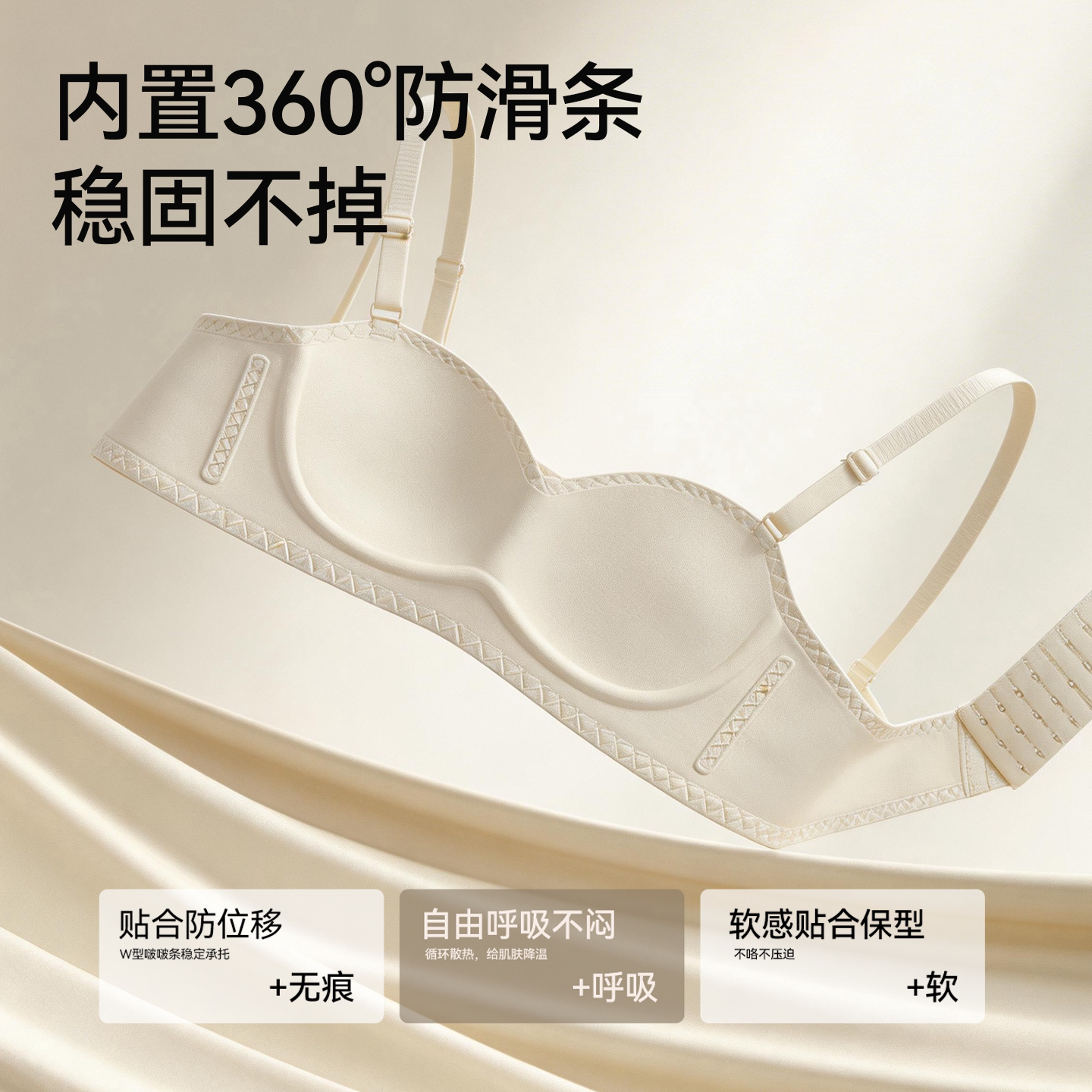 草本初色内衣女细肩带无痕夏季薄款大胸显小胸聚拢凉感无钢圈文胸