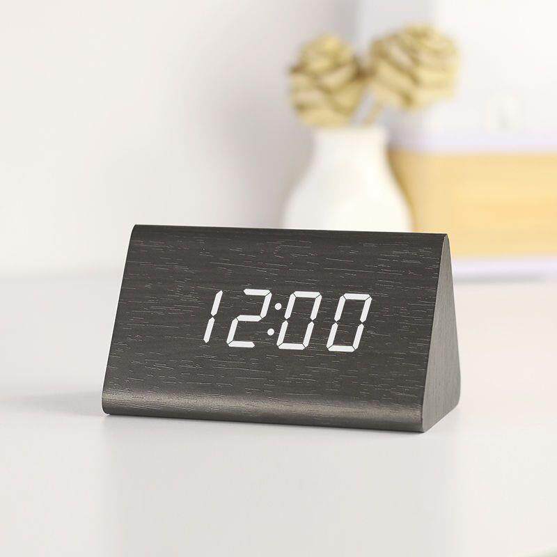 北欧木质木纹闹钟时钟电子钟静音夜光创意简约学生多功能复古台钟