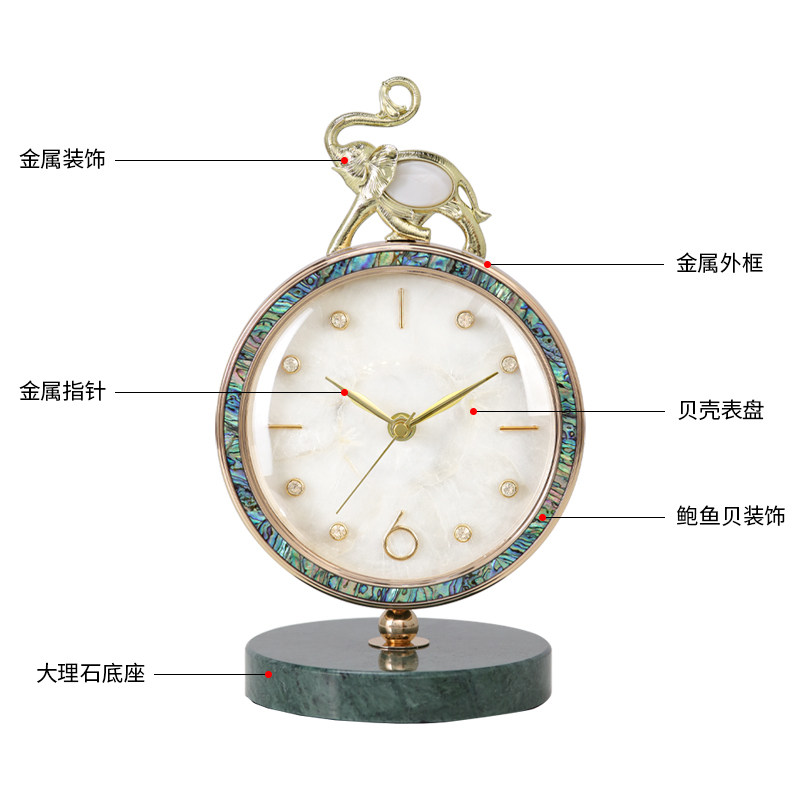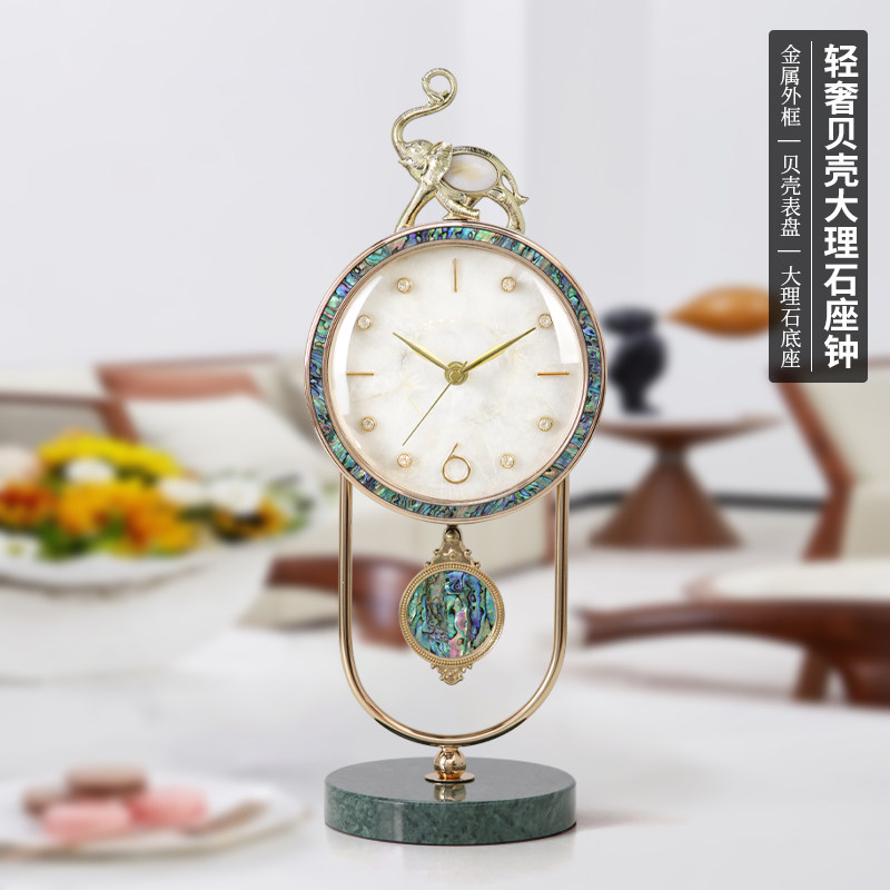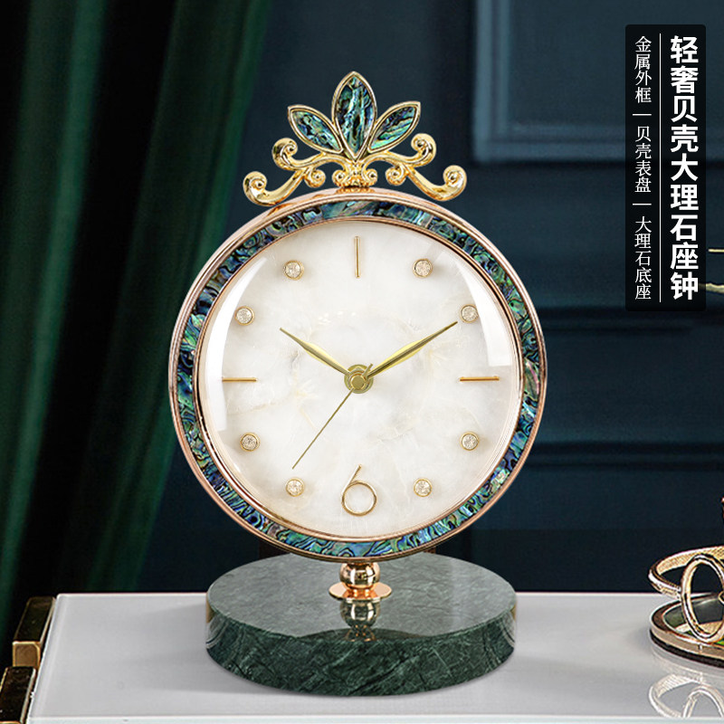 天然贝壳盘鲍鱼贝装饰 大理石底座 静音准时