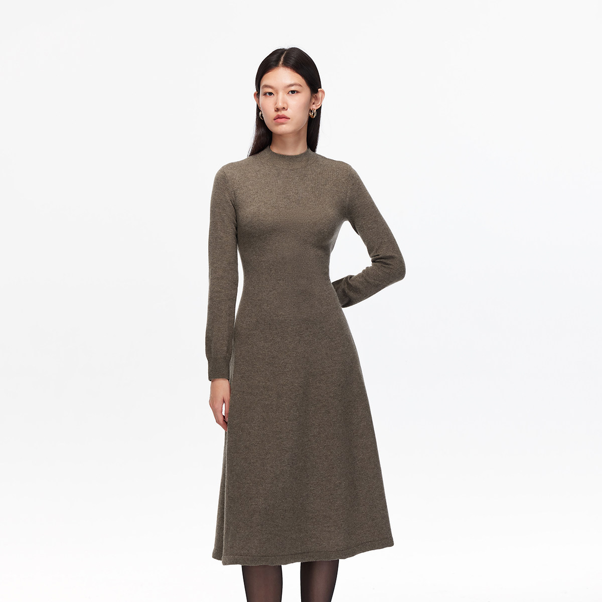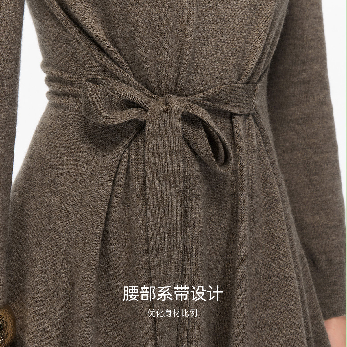 Vero Moda连衣裙2025秋季新款含绵羊毛立领系带A字修身纯色针织裙