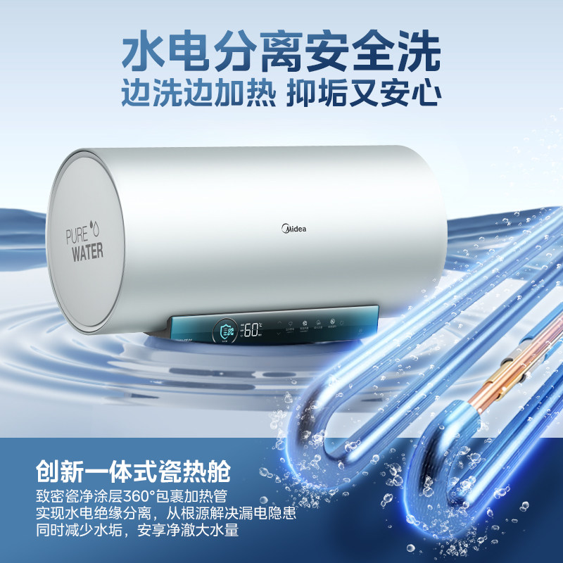 美的一级能效变频电热水器JA5节能60升80L家用速热卫生间出水断电