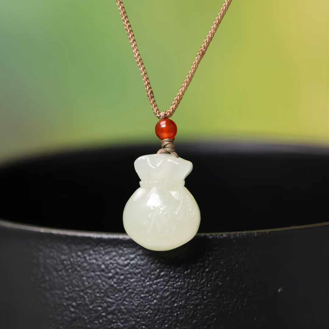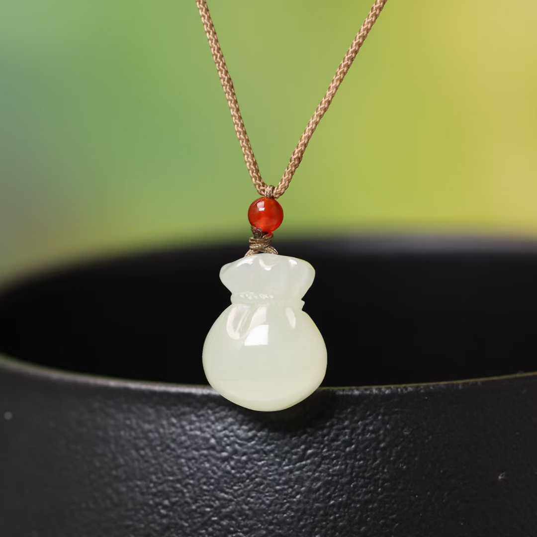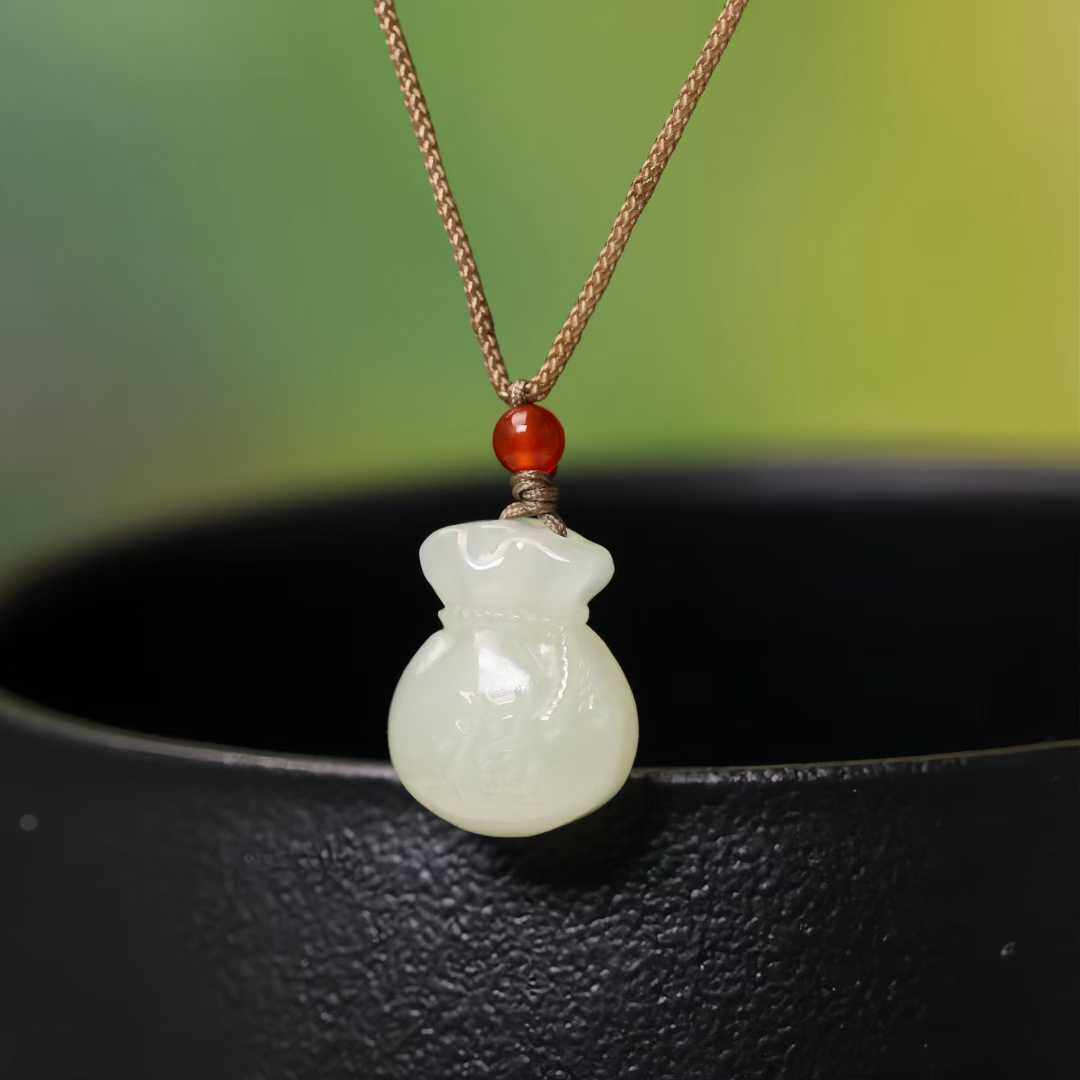 正品新疆和田白玉福袋吊坠新中式情侣钱袋福袋儿童宝宝礼物挂件