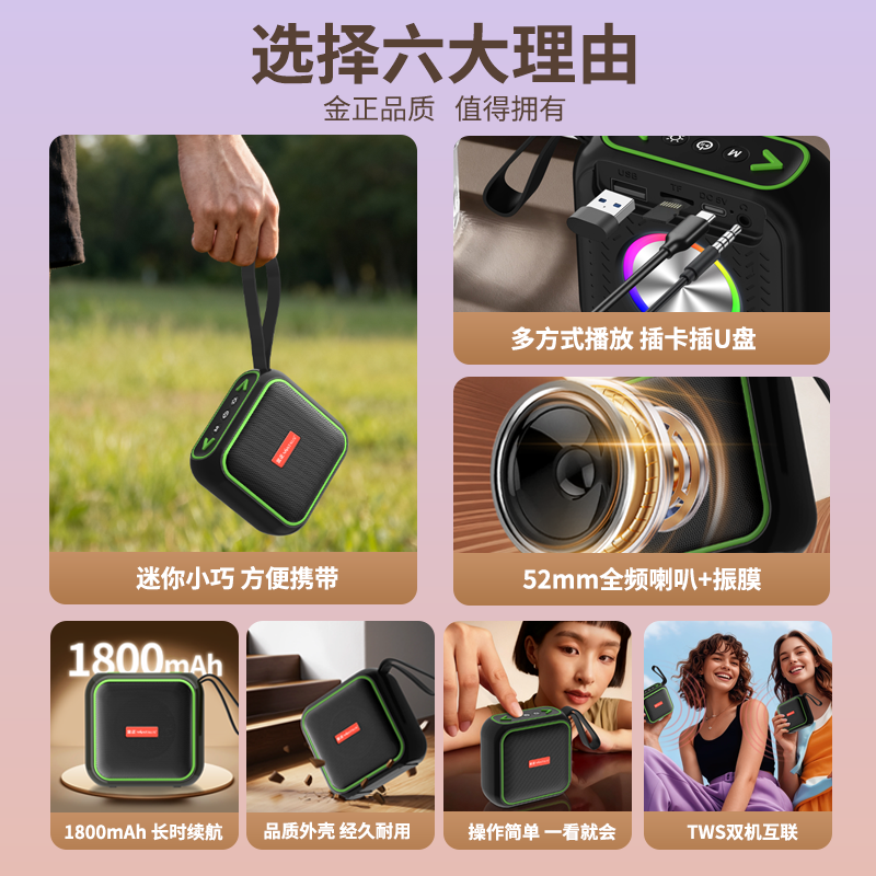 金正大音量蓝牙音箱迷你小音响高音质家用户外便携式可插卡低音炮