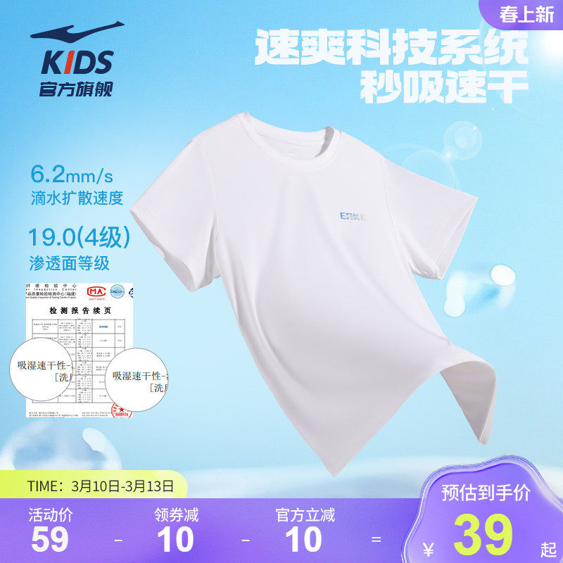 鸿星尔克童装速干T恤舒适面料,运动透气
