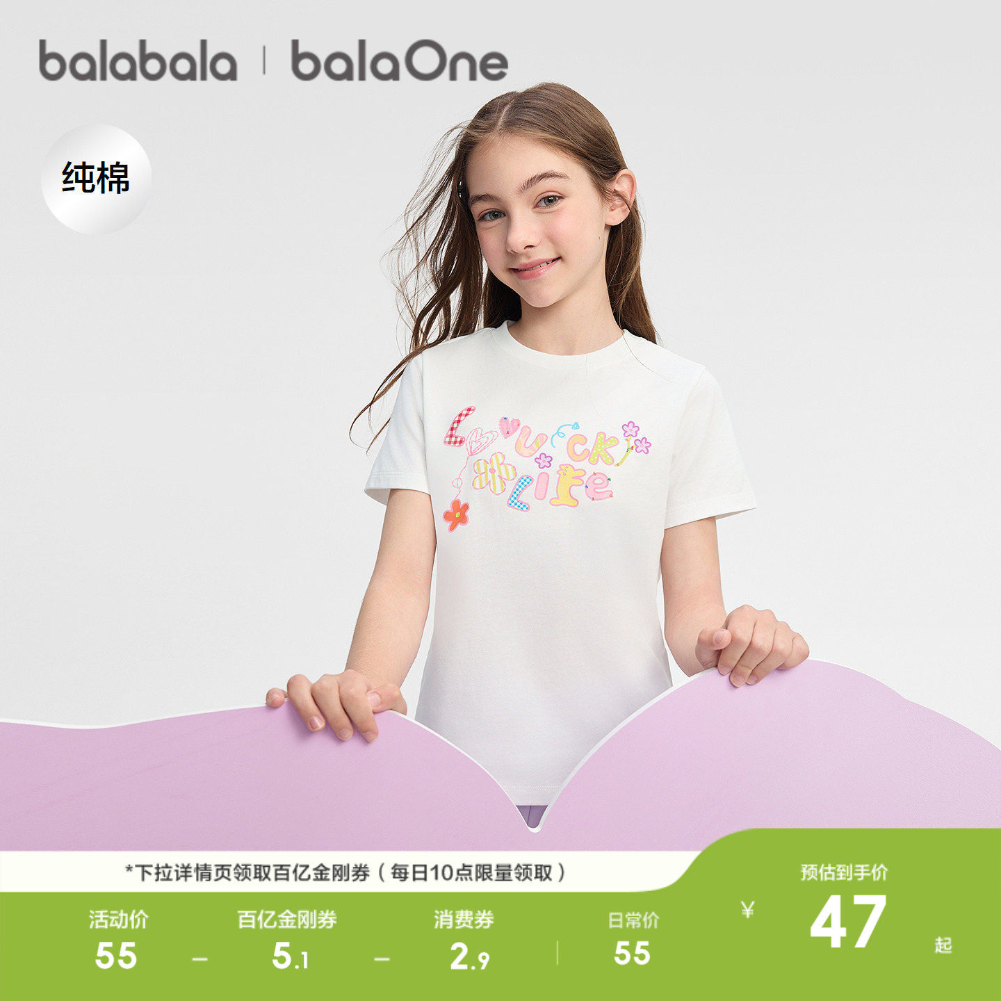 吸湿速干纯棉t恤,甜美贴布绣感印花