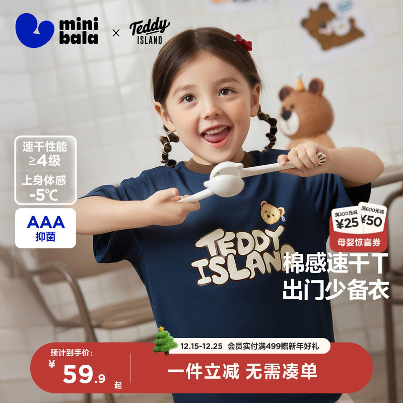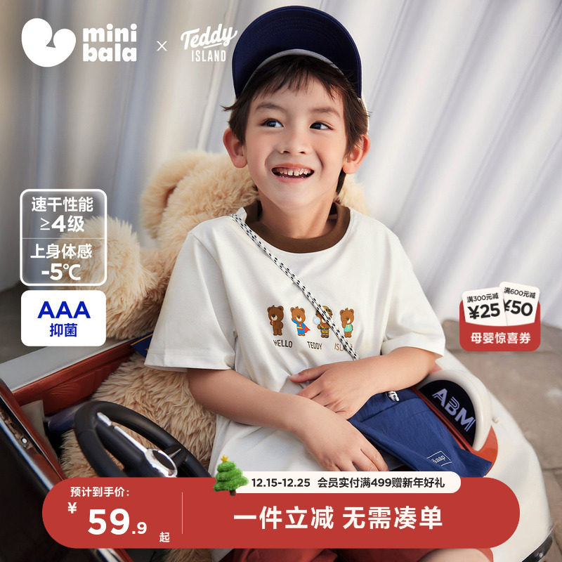 【凉感速干】迷你巴拉巴拉男女童短袖T恤儿童上衣夏装泰迪熊联名