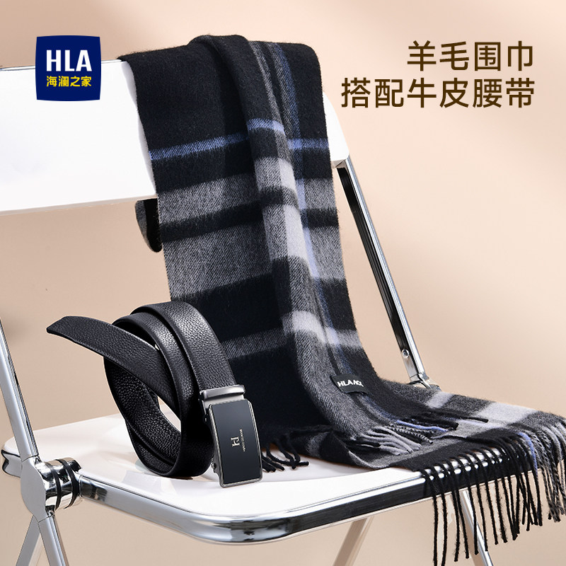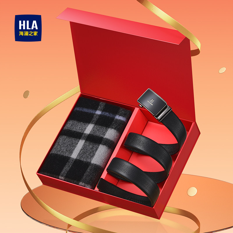 海澜之家腰带围巾礼盒男士潮流新款新年礼物自动扣皮带年轻人裤带