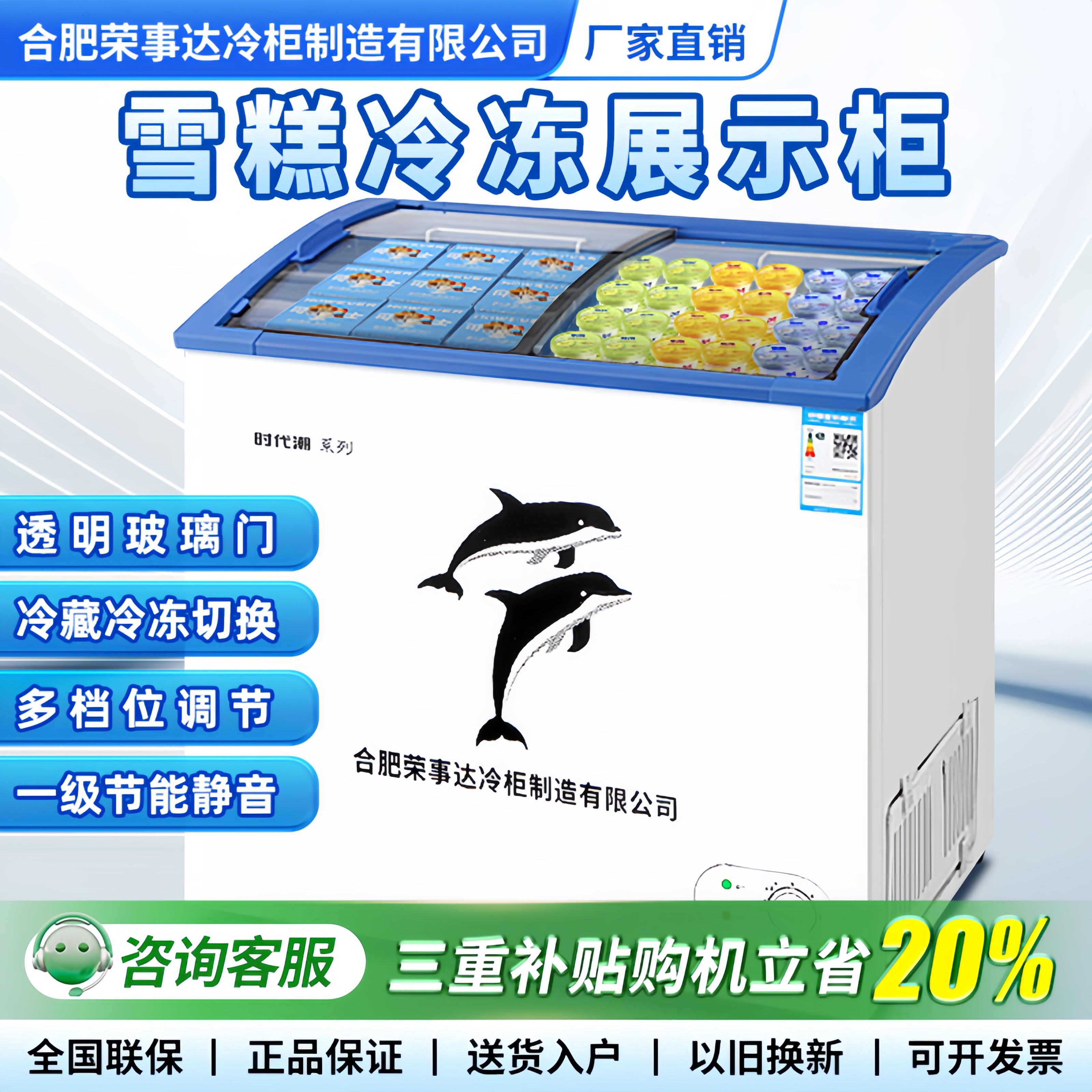 商用小型雪糕柜展示柜透明推拉门家用大容量冷藏冷冻调温静音省电