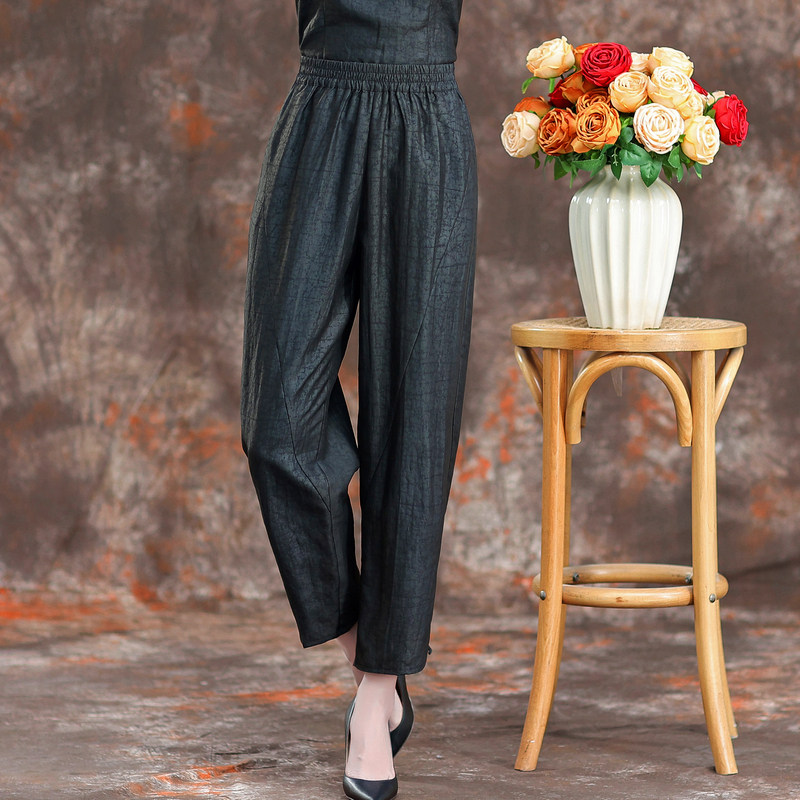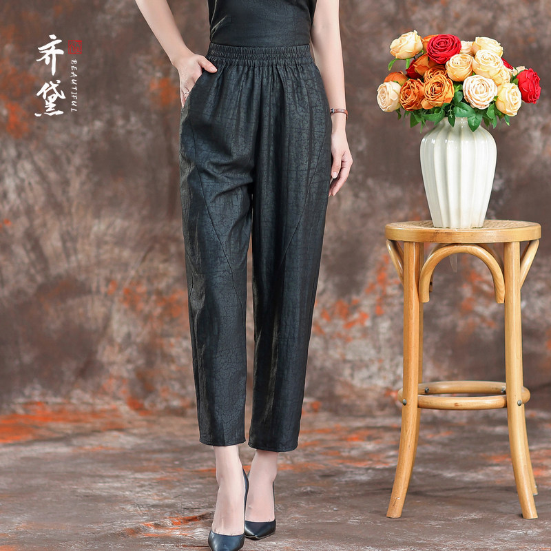 齐黛香云纱萝卜裤女梨形身材灯笼裤桑蚕丝真丝休闲九分裤