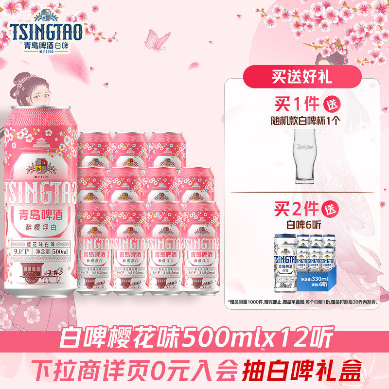 青岛啤酒醉樱浮白樱花味白啤500ml*12听 新品上市