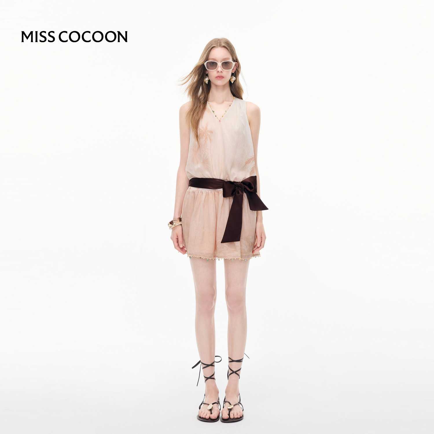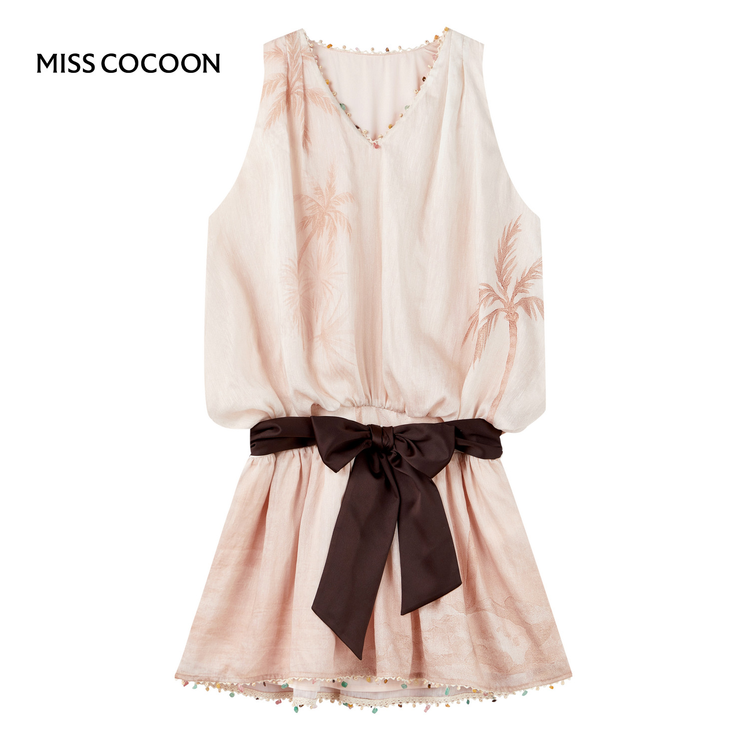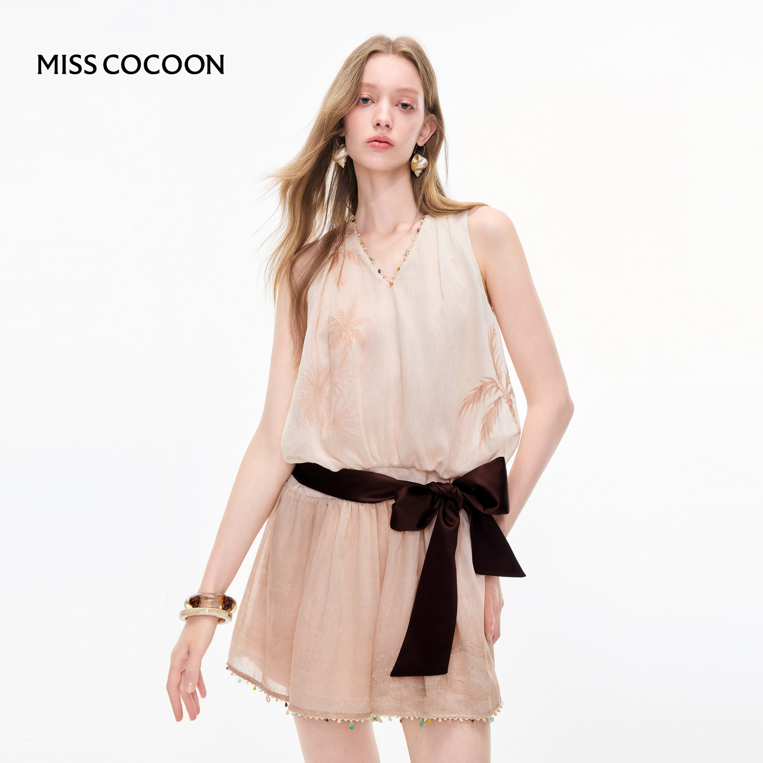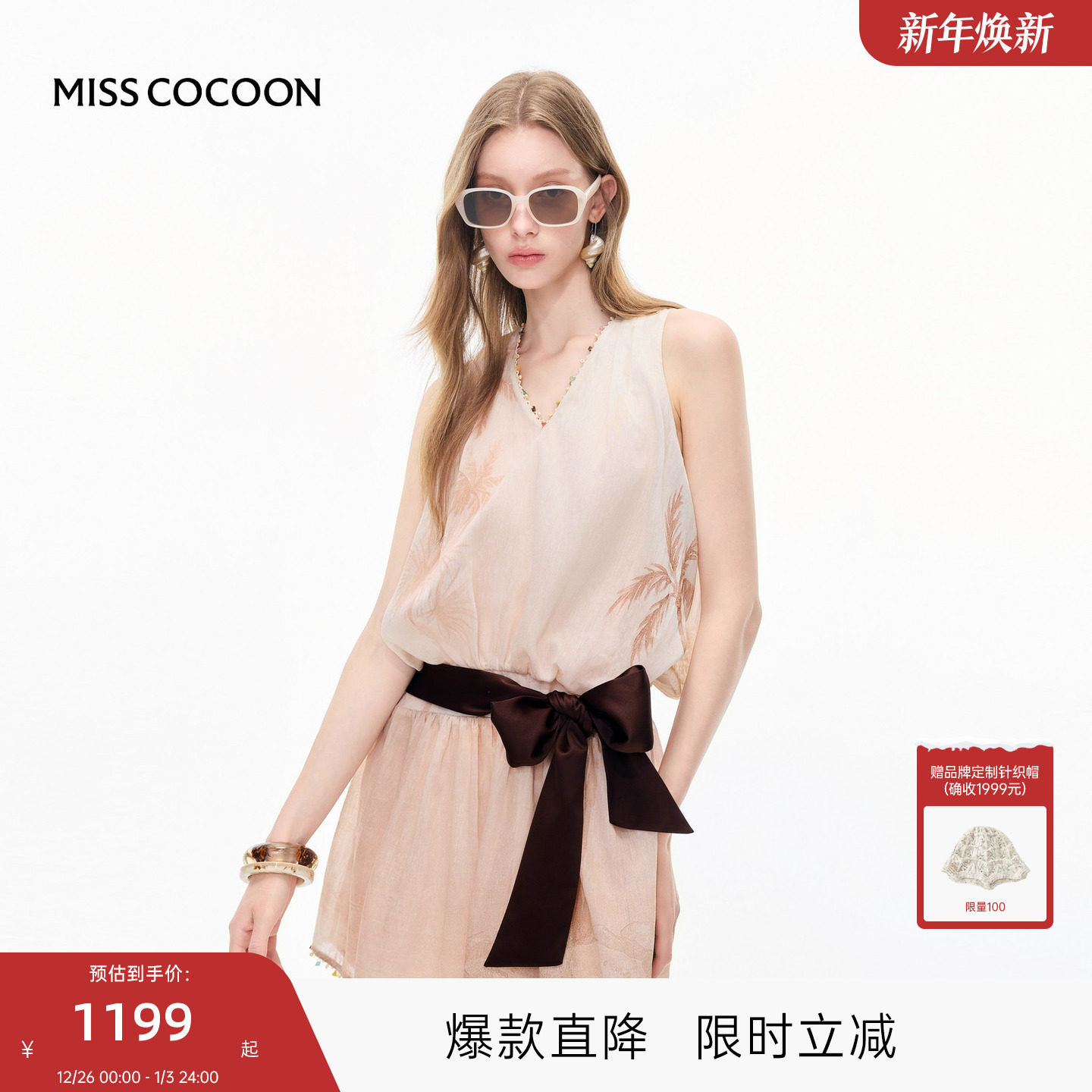 MISSCOCOON可可尼无袖V领裙子女2025秋季新款度假天丝亚麻连衣裙