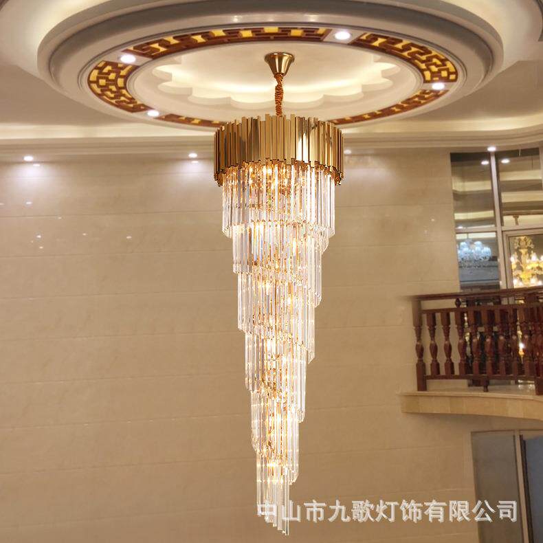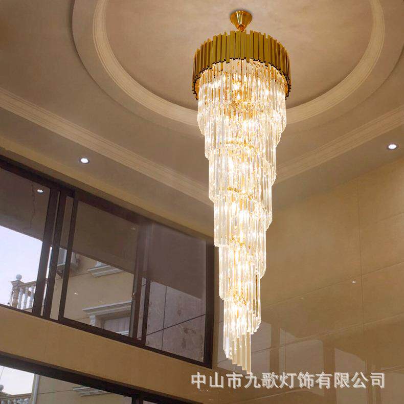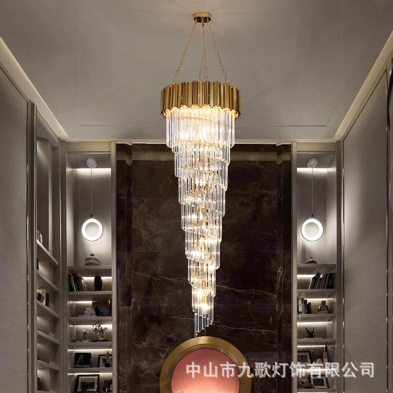 复式楼中楼吊灯轻奢水晶灯别墅客厅楼梯间吊灯后现代旋转长吊灯