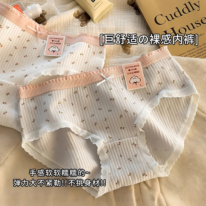 内裤女纯棉中腰全棉底档透气少女生甜美三角裤10A抑菌无痕裤抗菌
