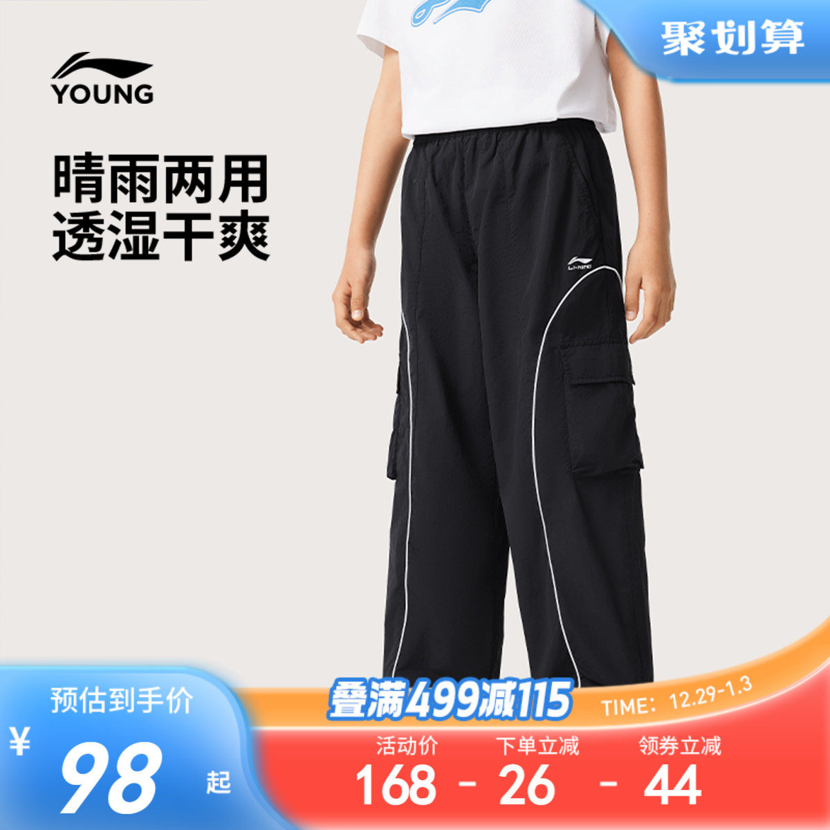 李宁儿童防泼水防晒防晒伞兵裤工装裤2025新款夏季男童装女防蚊裤
