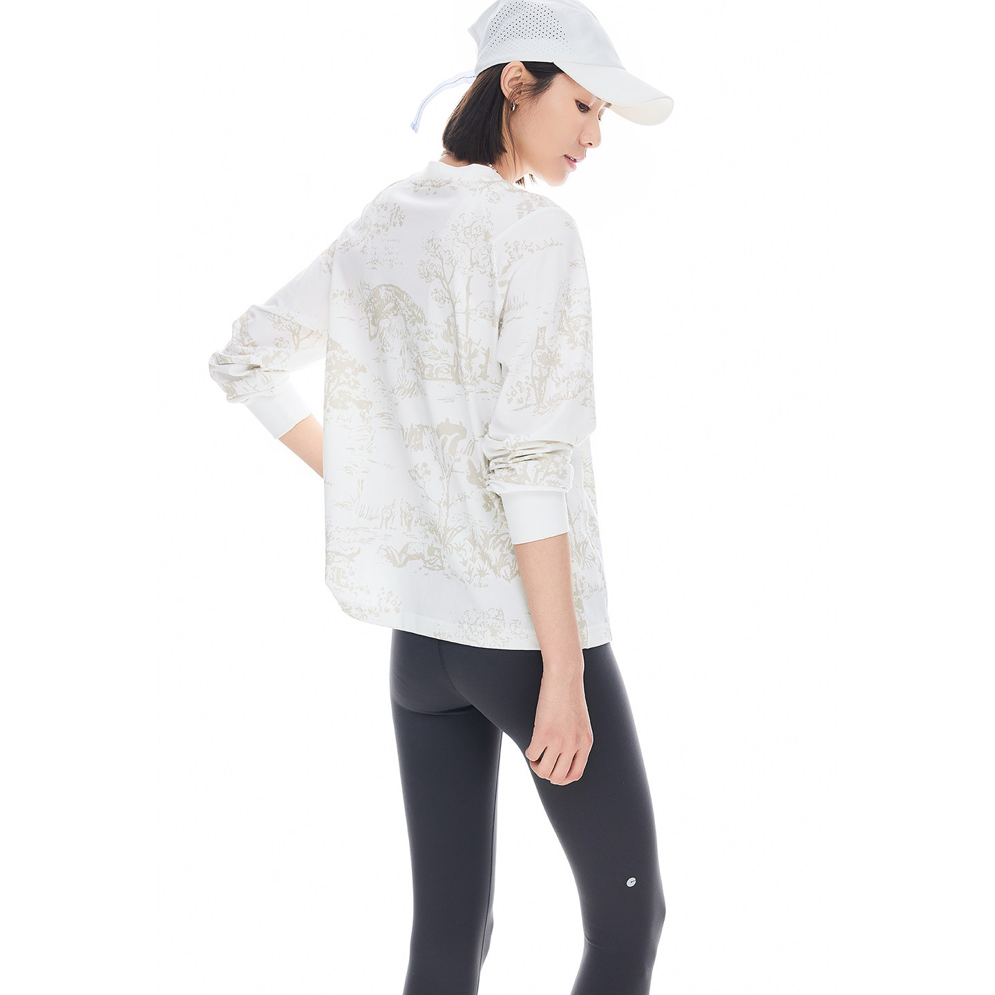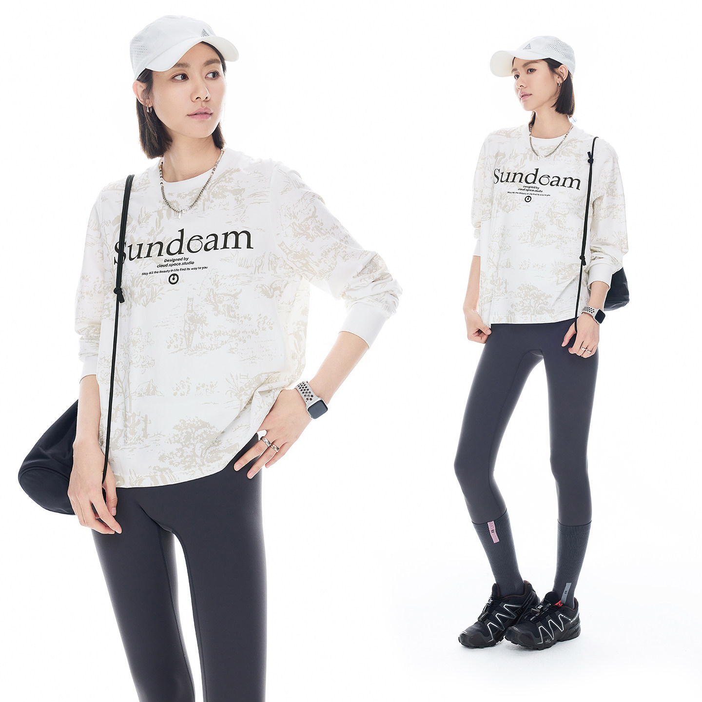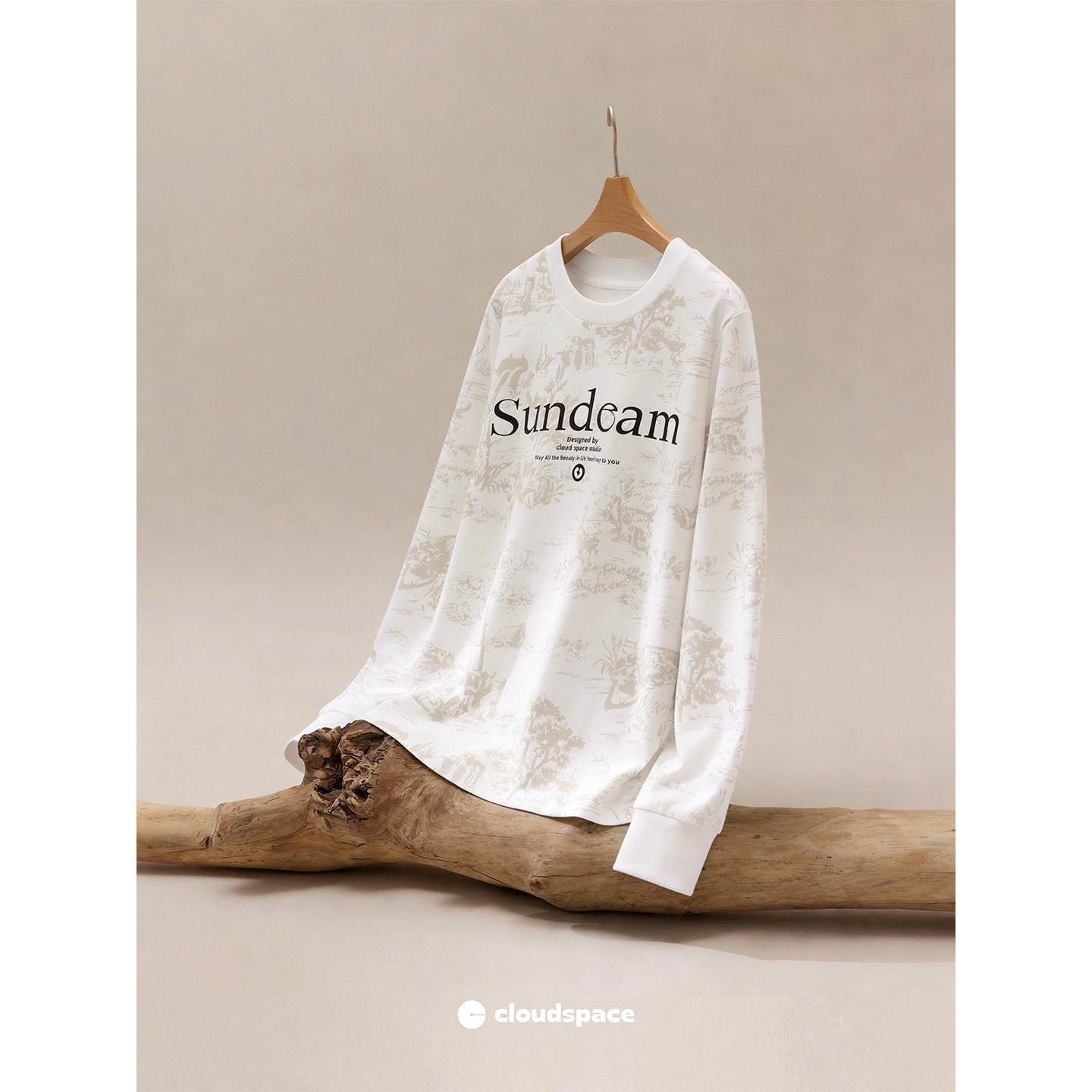 云上生活【字母T】创意花卉满印圆领正肩长袖女T恤2026春修身上衣