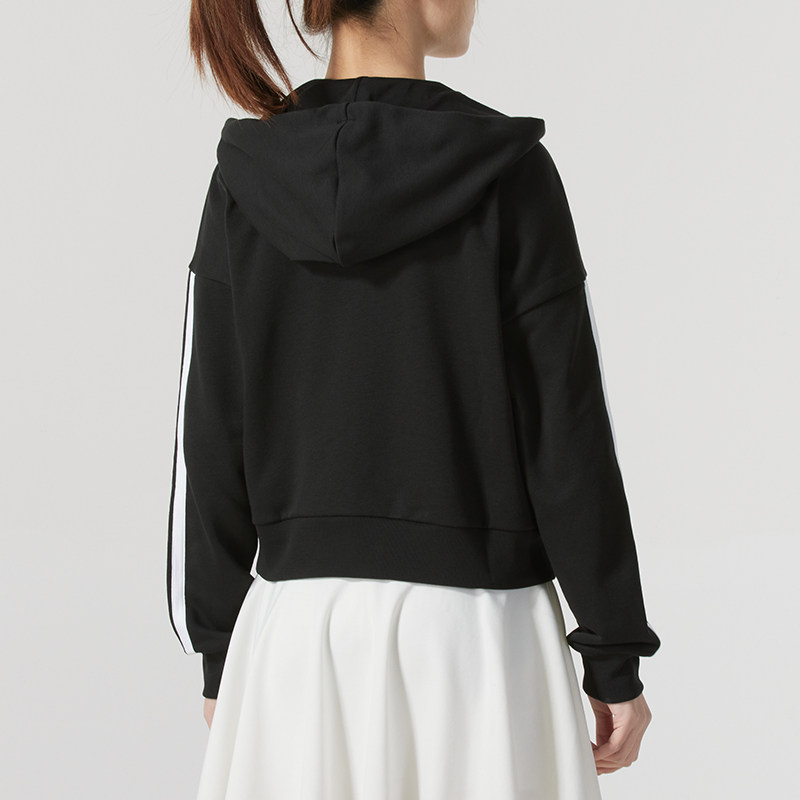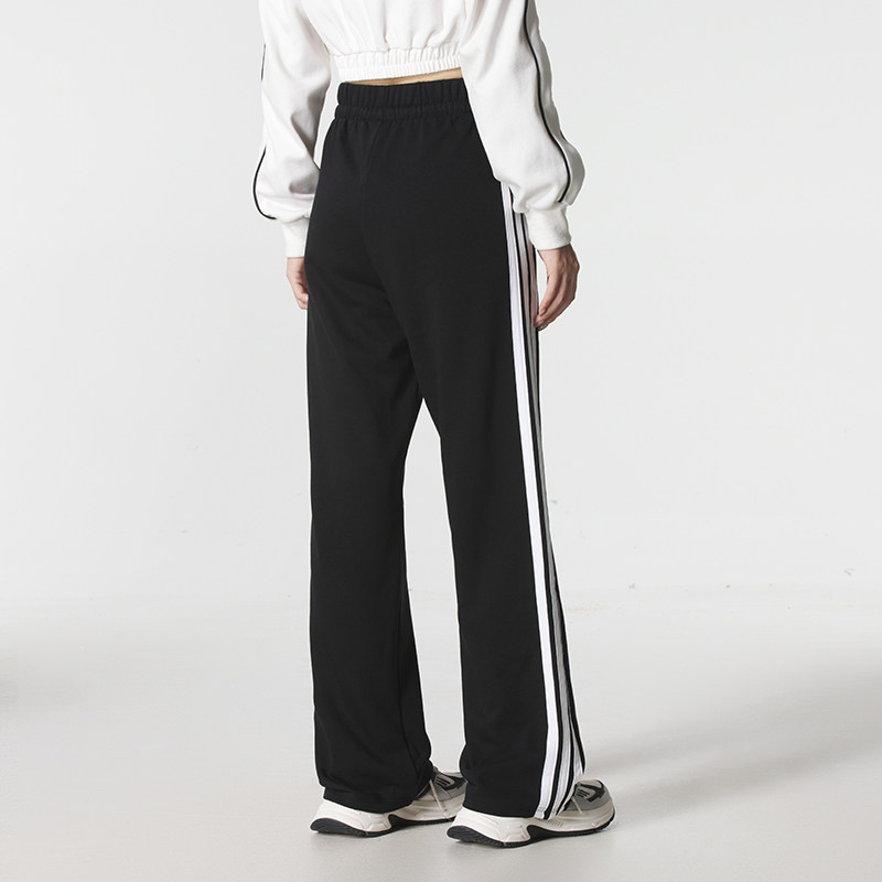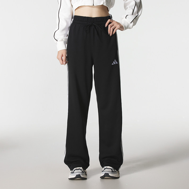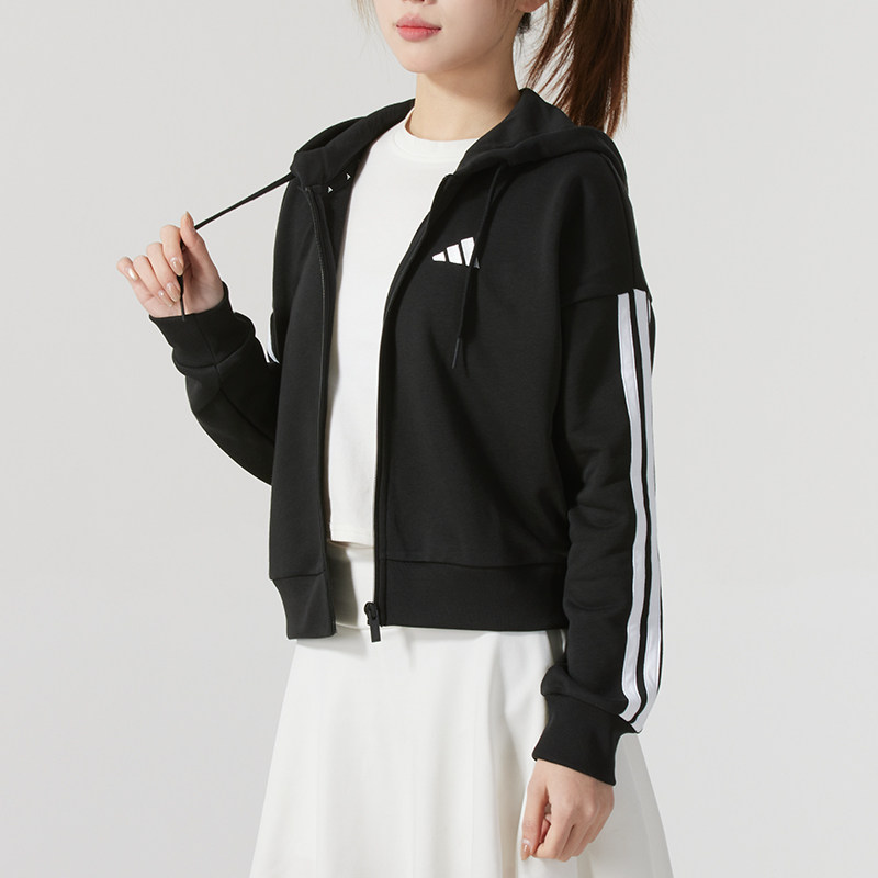阿迪达斯针织套装女秋季新款三条纹两件套运动连帽夹克复古直筒裤