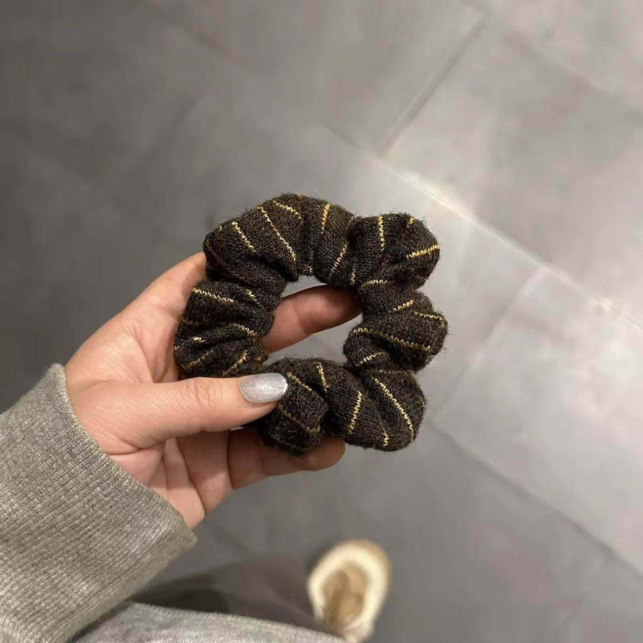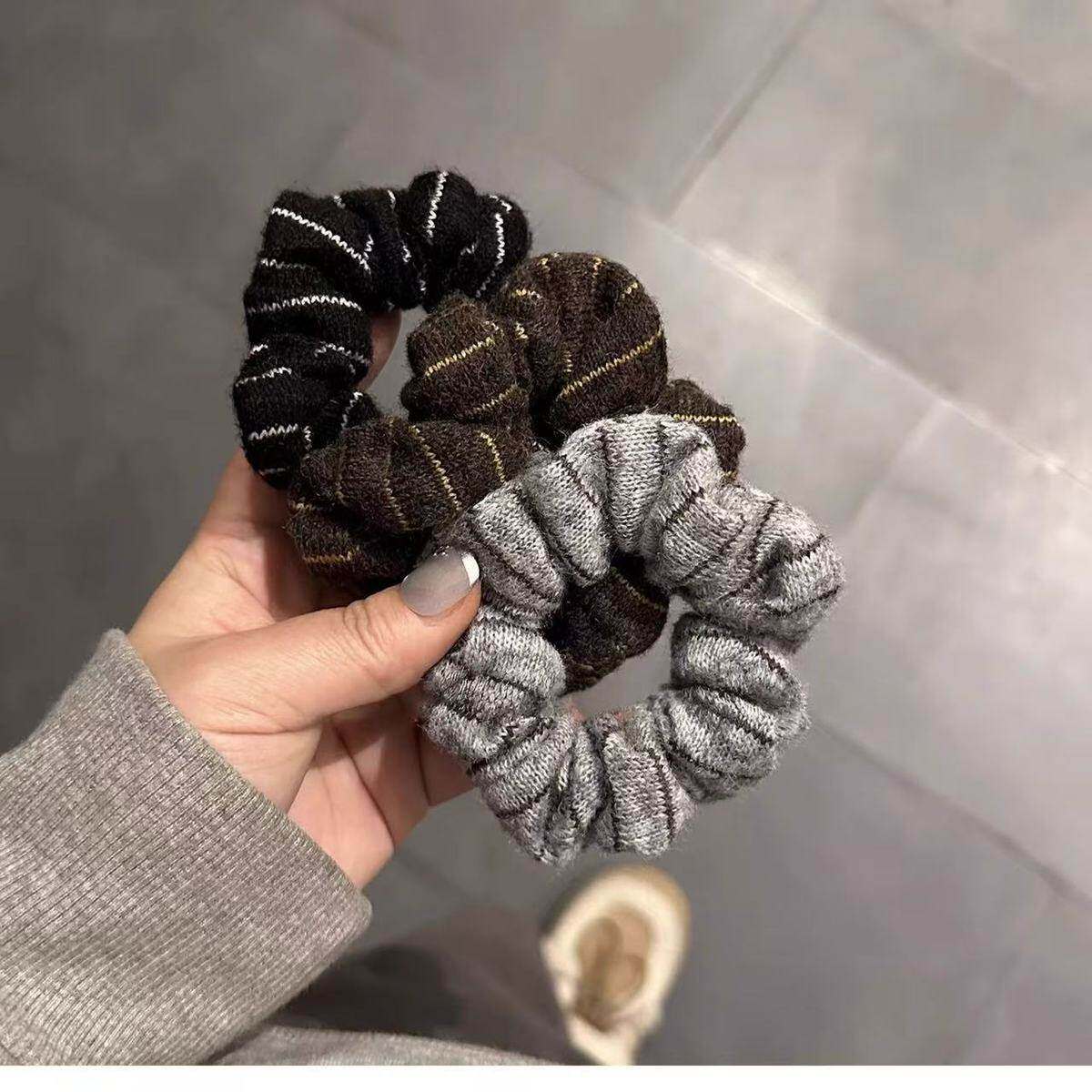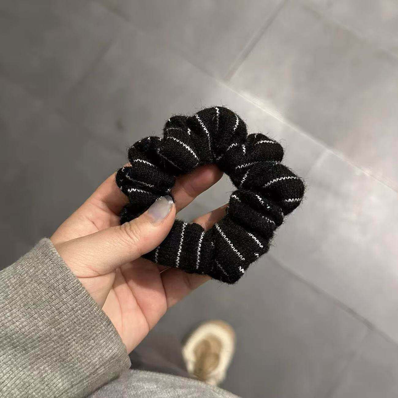 复古新款色黑色条纹大肠发圈时尚百搭高颜值扎马尾丸子头发饰