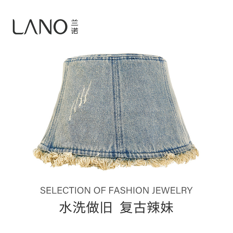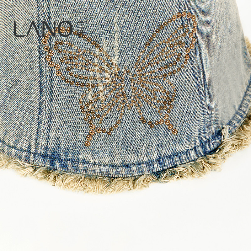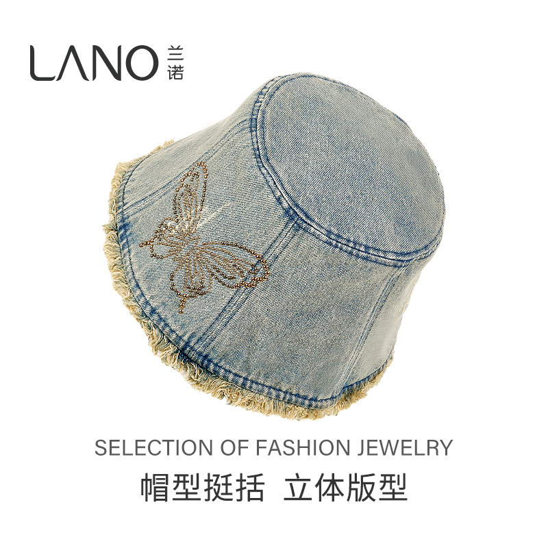 兰诺牛仔蝴蝶渔夫帽女2025秋季新款大头围显脸小水桶帽子旅行平顶