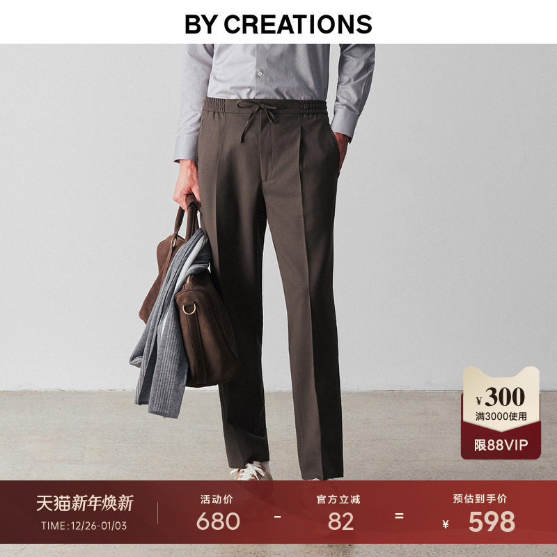 【可机洗强捻】柏品美利奴羊毛高腰西裤男2025冬新款商务通勤长裤