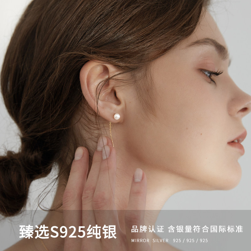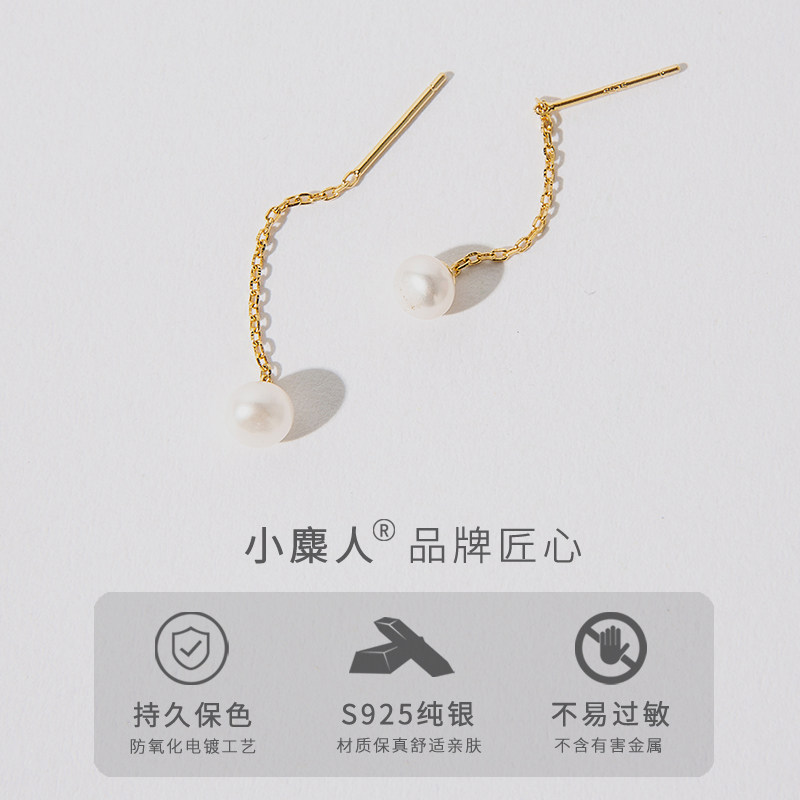 小麋人925淡水珍珠纯银耳线女耳饰ins冷淡耳环耳钉韩气质简约饰品