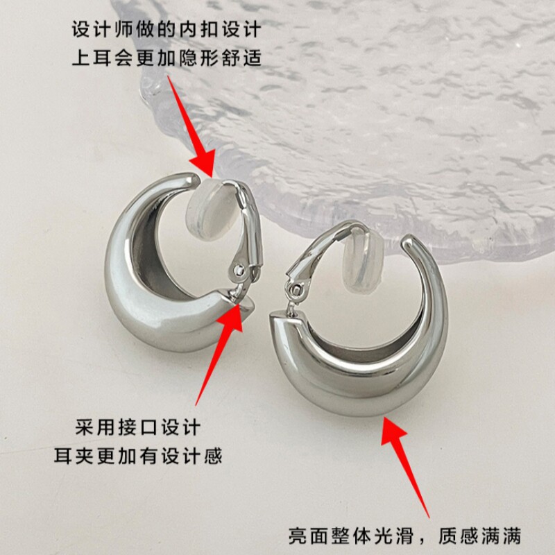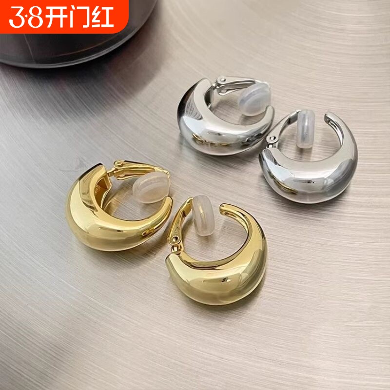 巨隐形!素圈金属耳圈无洞耳夹女高级感无痛纯银耳钉2024新款耳饰