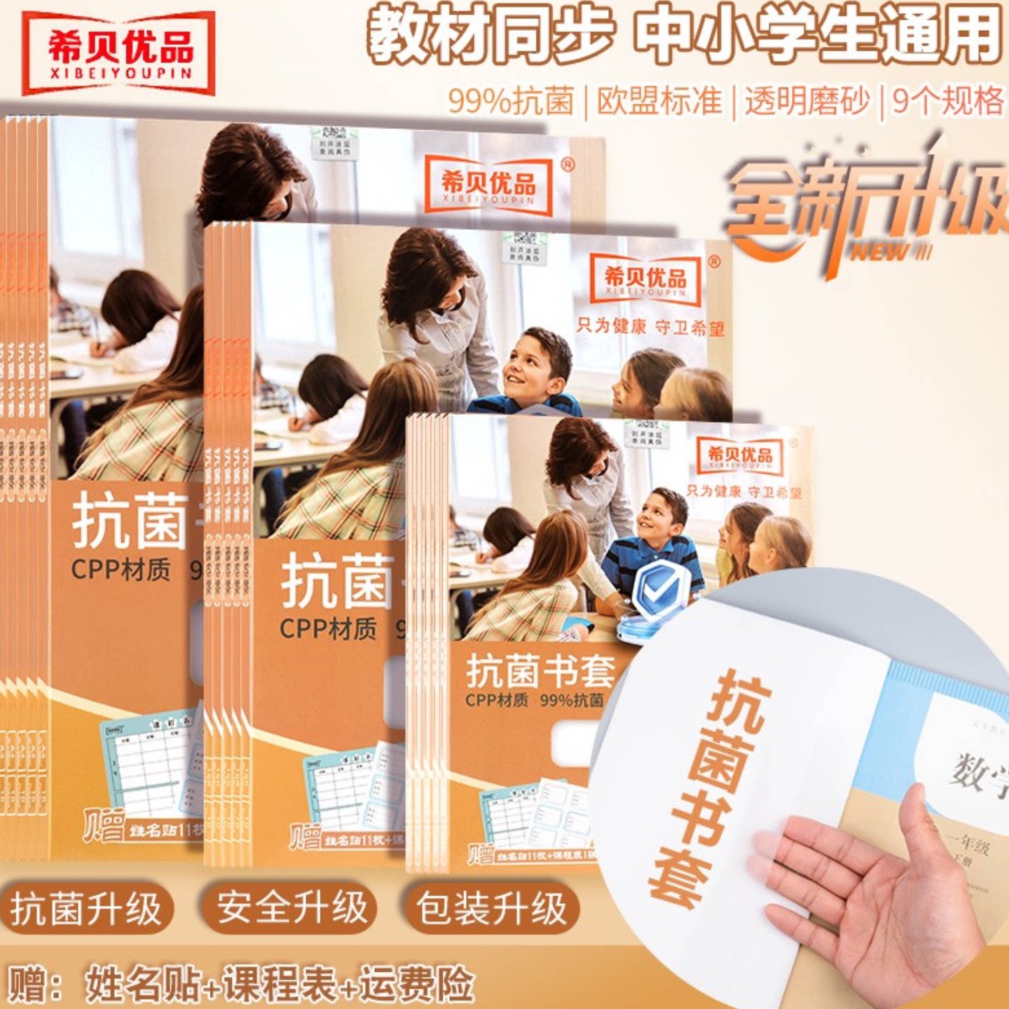 希贝优品抗菌书皮书套透明小学生初中生高中课本专用书皮保护套透明一年级36k 22k作业本书皮包书套2025新款