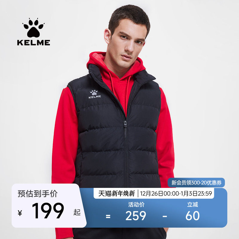 KELME卡尔美官方旗舰运动棉马甲男防风冬季足球训练背心外套坎肩
