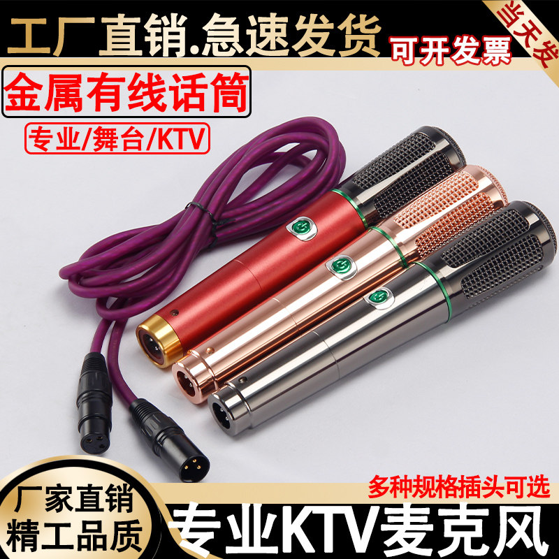 K歌有线话筒全金属5米长线动圈麦唱歌舞台家用功放音响麦克风银色