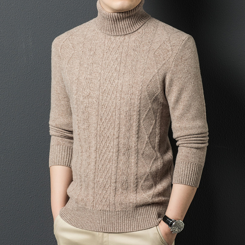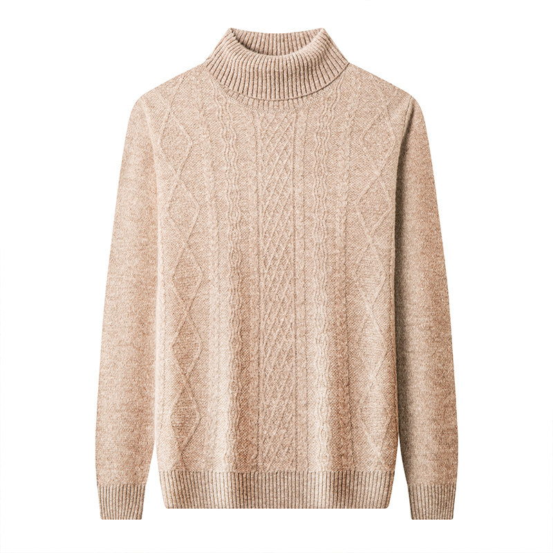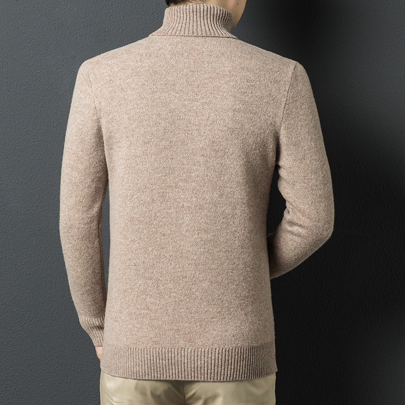 恒源祥秋冬100%纯羊毛衫男士高领加厚毛衣中老年套头针织打底衫男