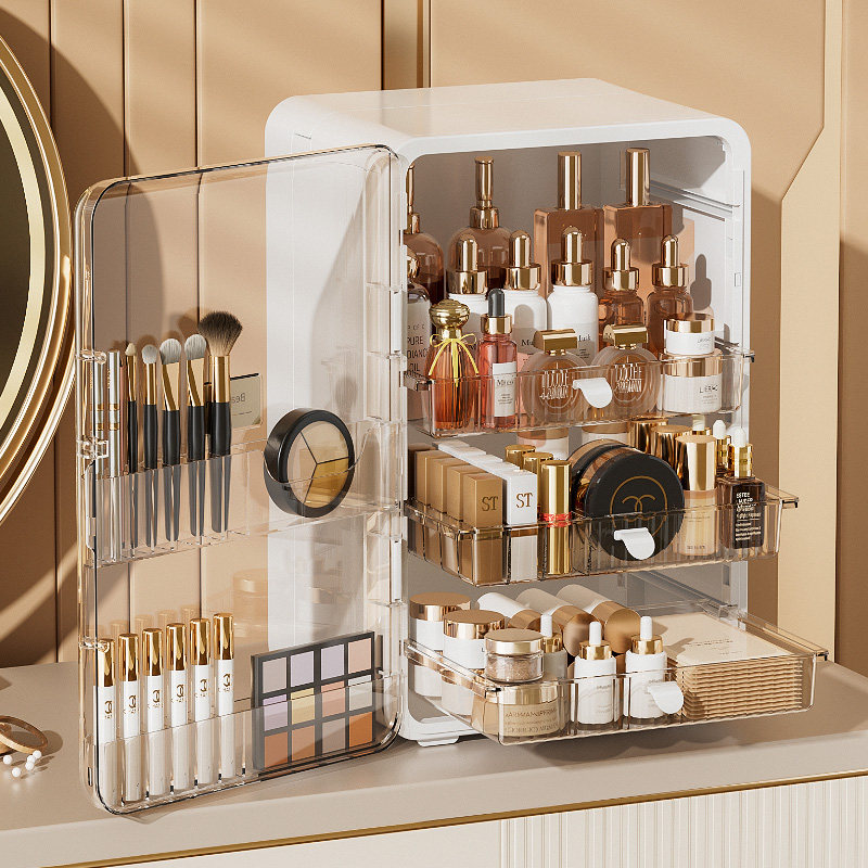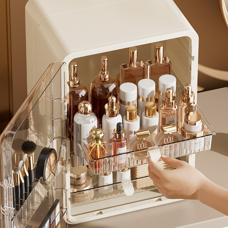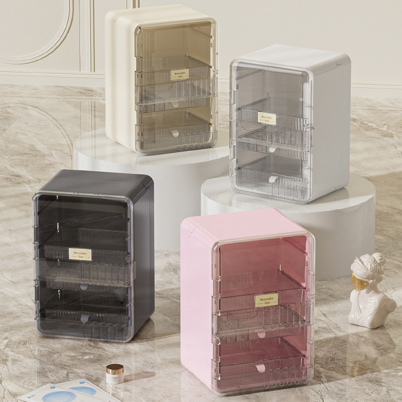 桌面防尘大容量护肤化妆品收纳柜家用梳妆台带盖口红化妆品收纳盒