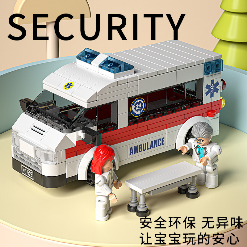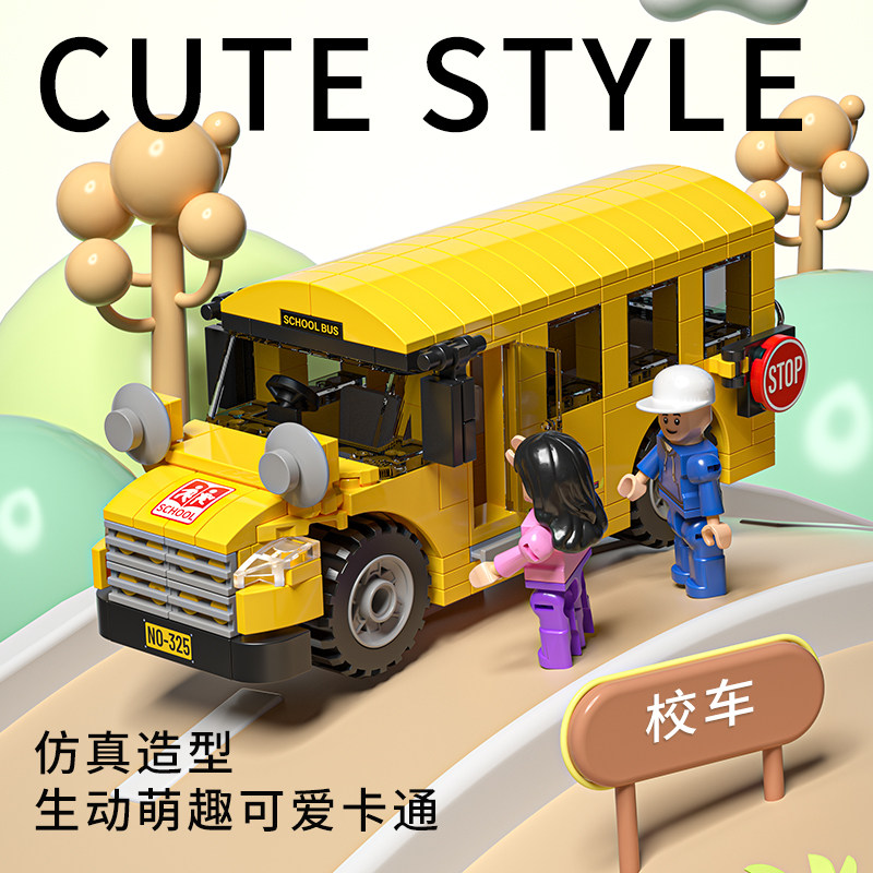 儿童积木玩具车排插玩具启蒙生日礼物6岁拼插公交车巴士城市消防