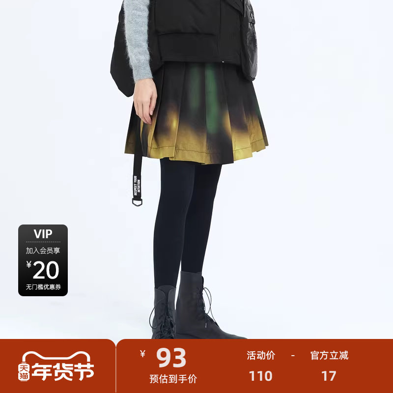 sdeer圣迪奥个性织带渐变百褶A字短裙艺术生风格半身裙S20481301