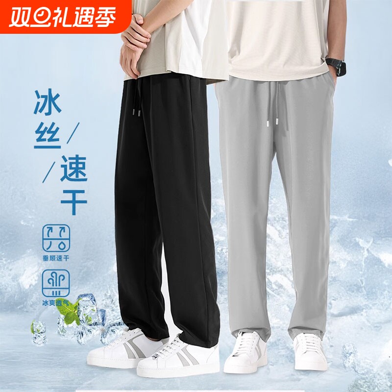 冰丝裤男裤夏季薄款直筒宽松高弹速干空调裤运动防晒长裤男子篮球