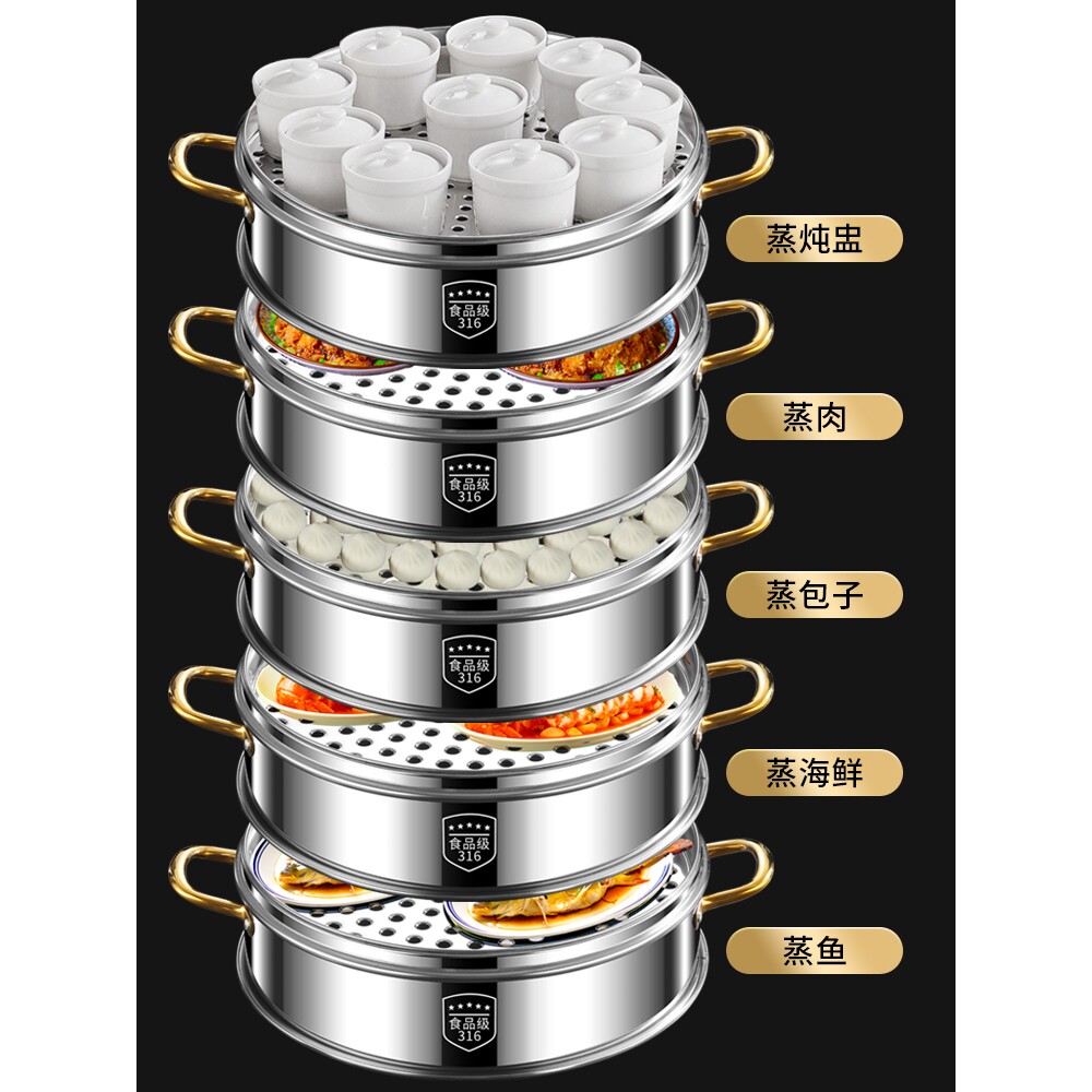 德国316不锈钢蒸笼商用家用大容量蒸包子多层大蒸锅超食品级蒸鱼