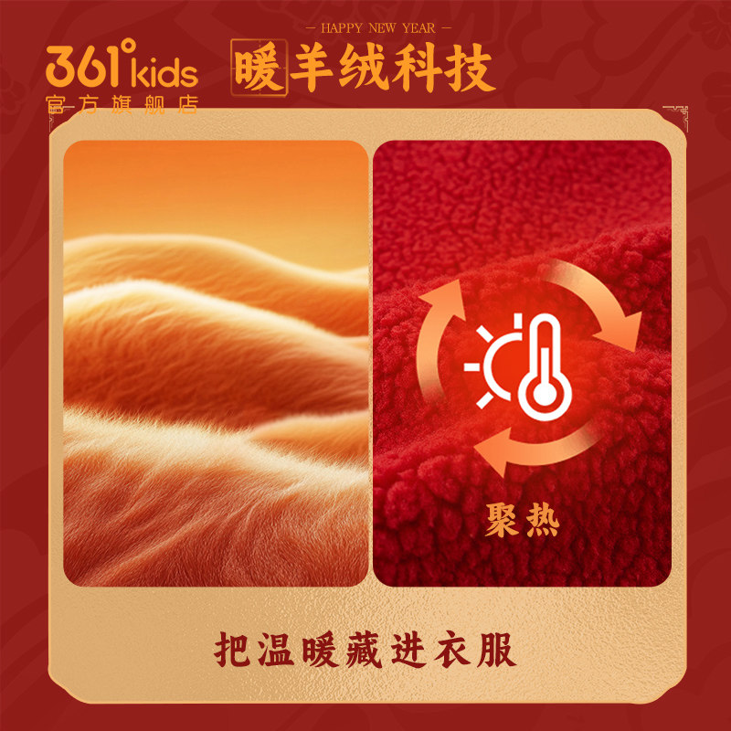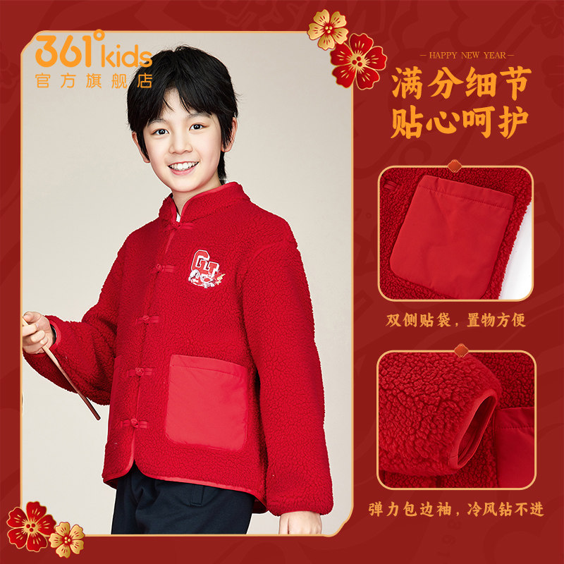 暖羊绒科技|361童装男童加绒加厚外套中式唐装2025冬红色新年上衣