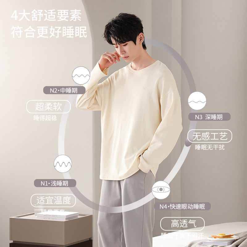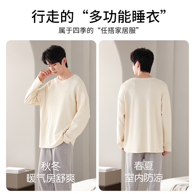 猫人春秋季纯棉睡衣男款2024新款长袖可外穿秋冬款男士家居服套装