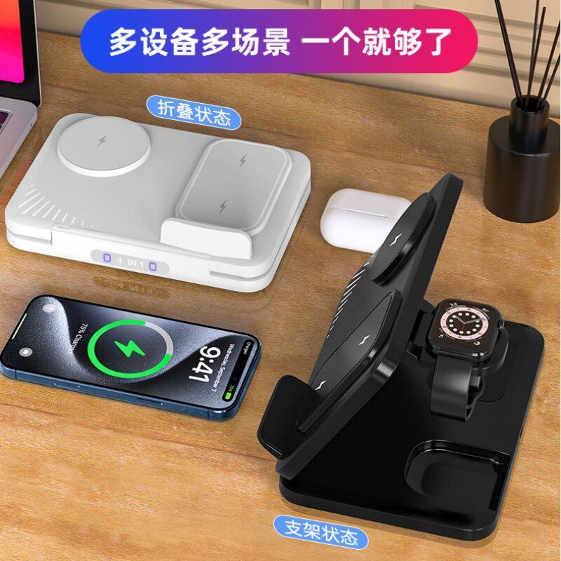 无线充电器适用苹果iPhone16promax15手机iwatchs10三星手表耳机多功能立式底座三合一快充支架MagSafe充电器