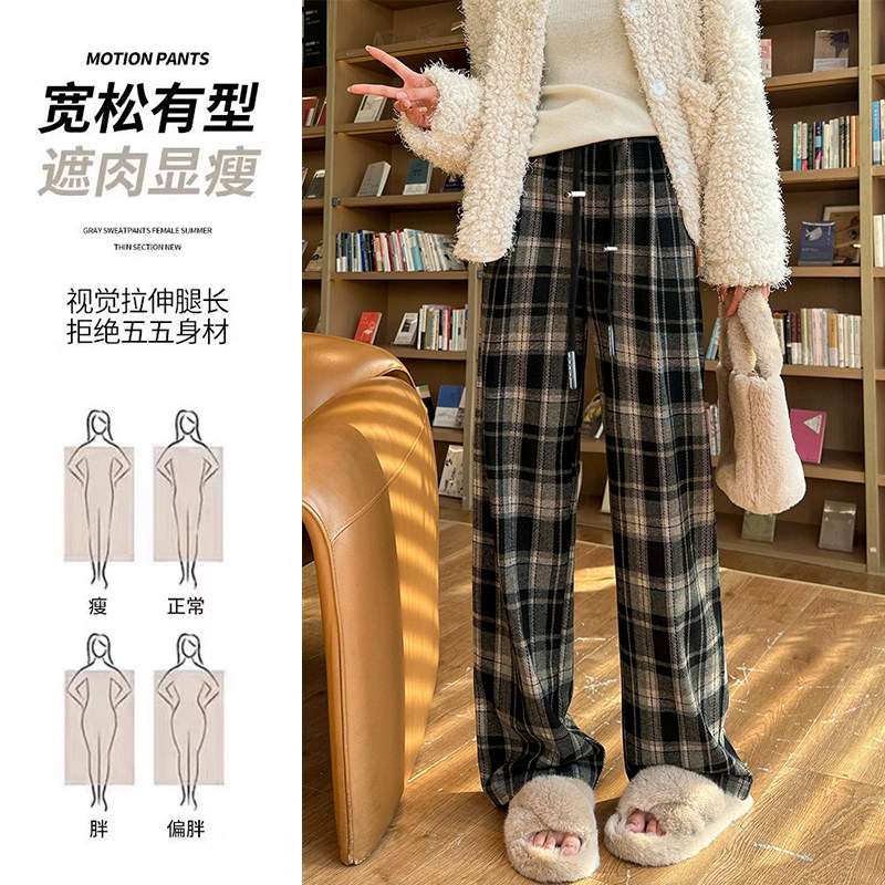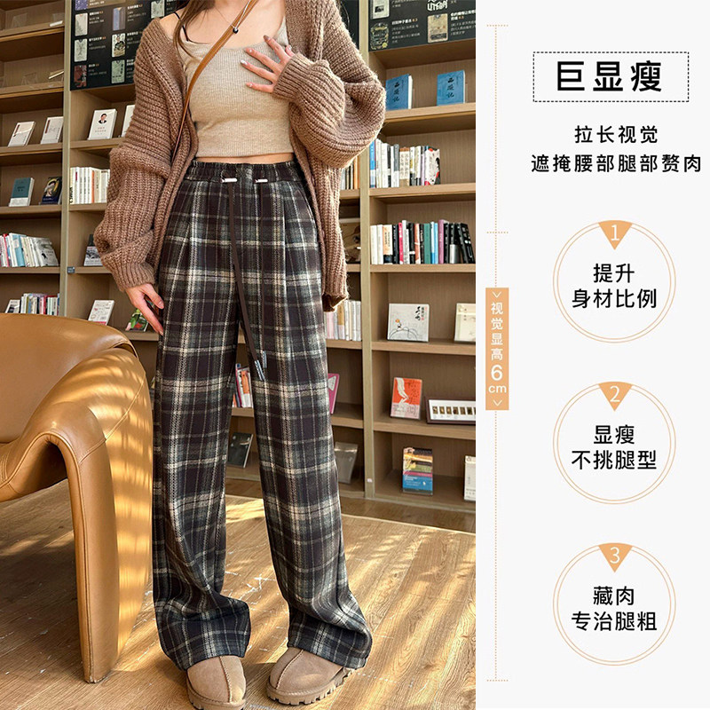 婧麒孕妇格纹阔腿裤冬季加绒加厚无托腹休闲裤小个子外穿保暖长裤
