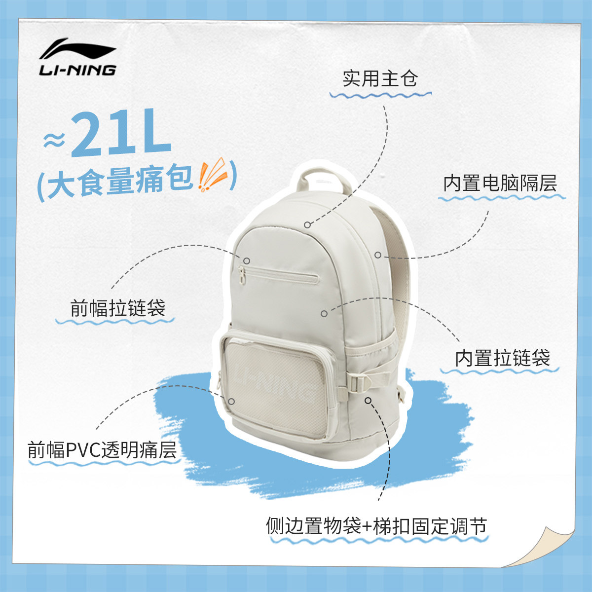 李宁双肩包女2026新款可爱痛包高颜值通勤上课背包书包学生运动包
